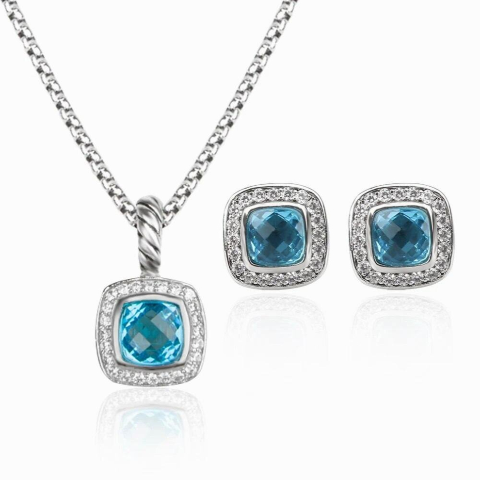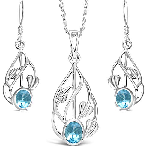 Alexander Castle Women's Jewellery Set 925 Sterling Silver & Blue Topaz Charles Rennie Mackintosh Gift Set - Necklace and Earring Set with Jewellery Gift Box