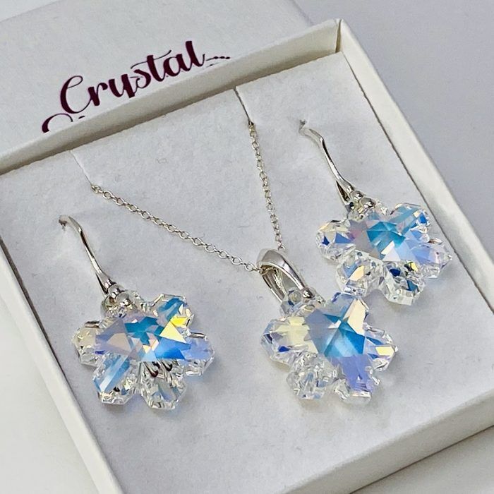 925 Silver AB Snowflake Necklace And Earring Set Made With Austrian Crystal