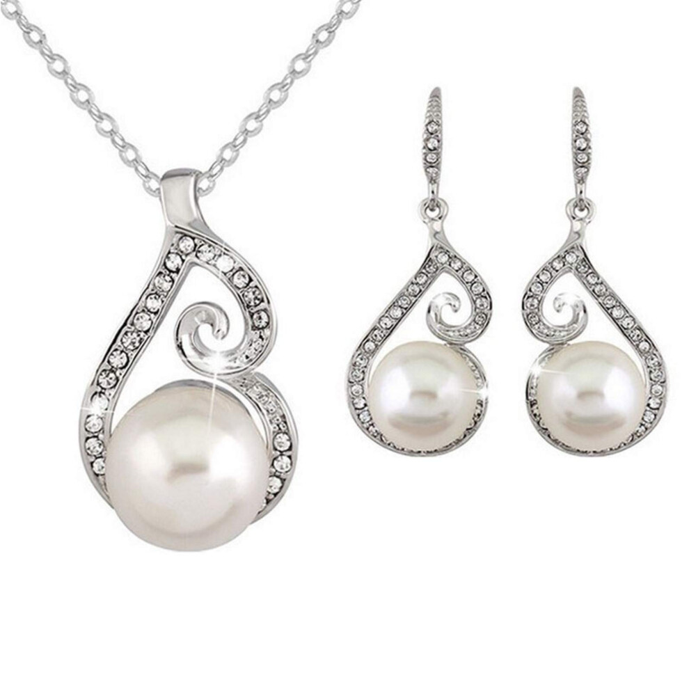 Vintage Pearl Pendant Necklace And Drop Earring Set Silver Women Birdal Wedding Jewelry Set ZD1 LB8
