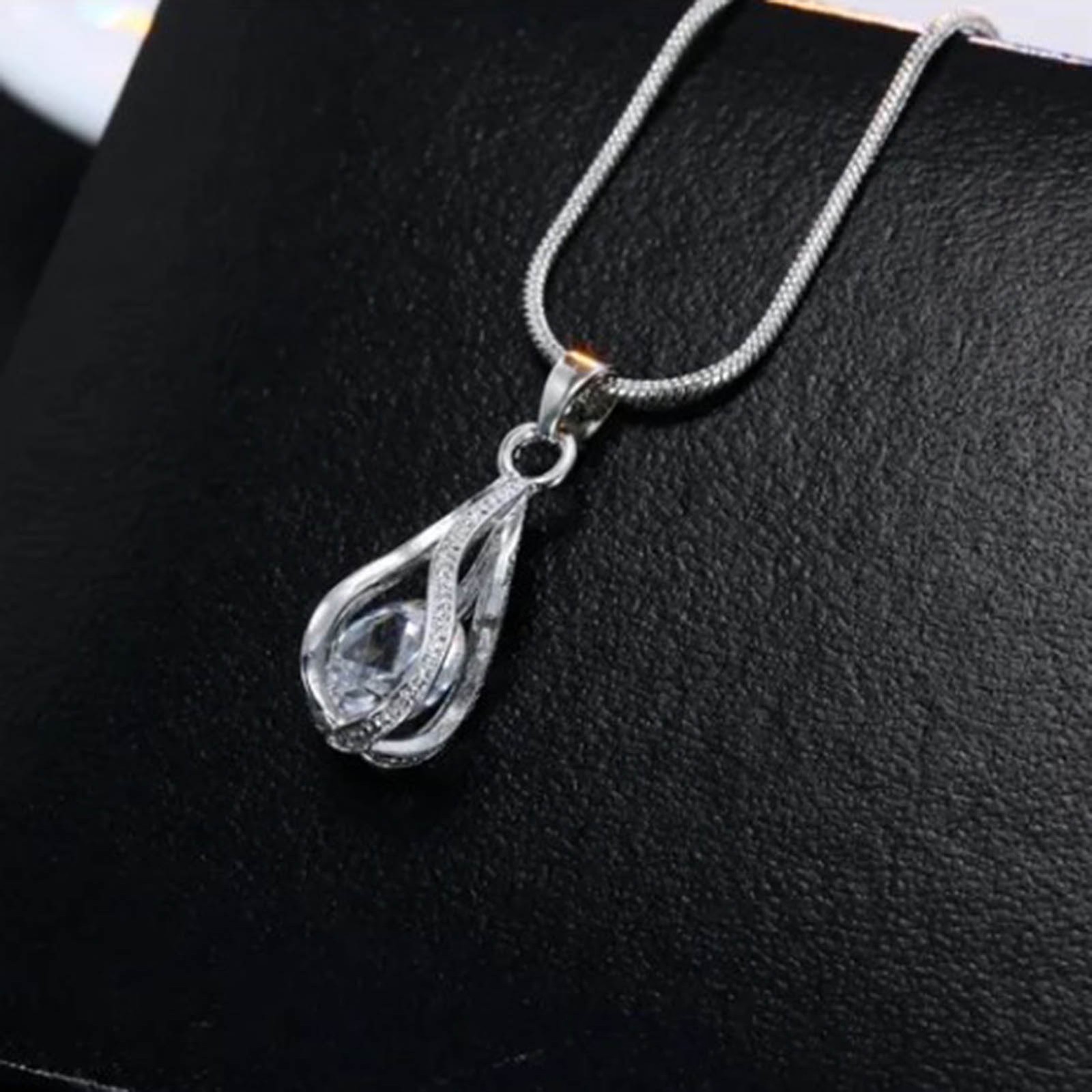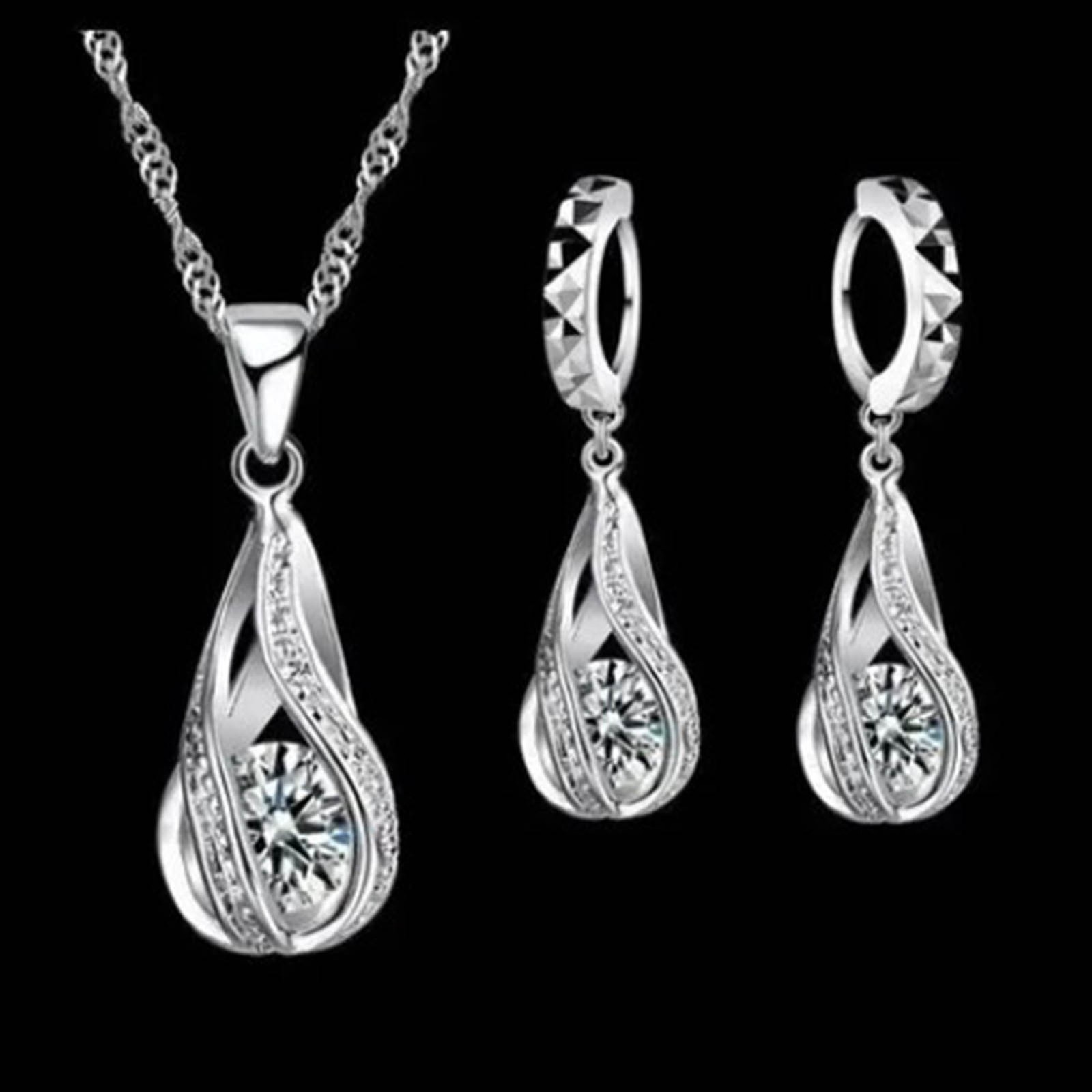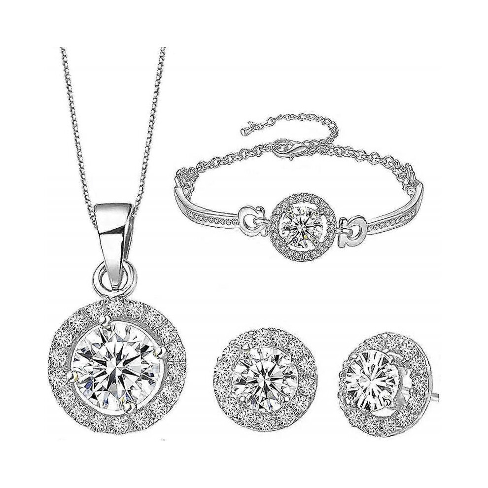 Women's Necklace Bracelet and Earring Set Zircon Pendant Jewelry (Silver)