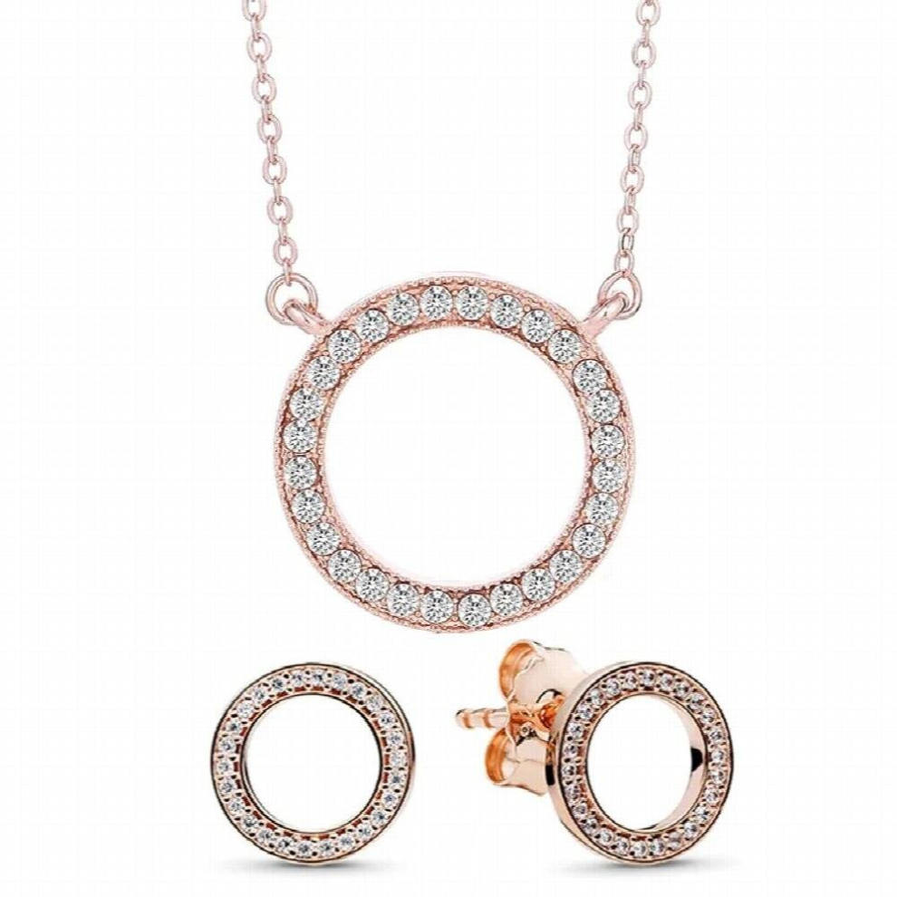 European and American Sterling Silver 925 tree of Life Necklace Earring Set Necklace rose set