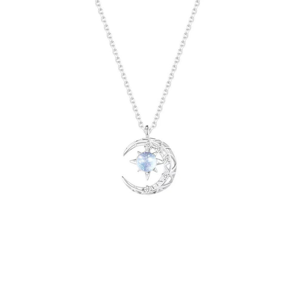 Necklace and Earring Jewelry Set, Women Girl Silver Star Pendant Necklace and Star Earring, Moon Necklace and Moon Stud Earring, Inlaid Zircon
