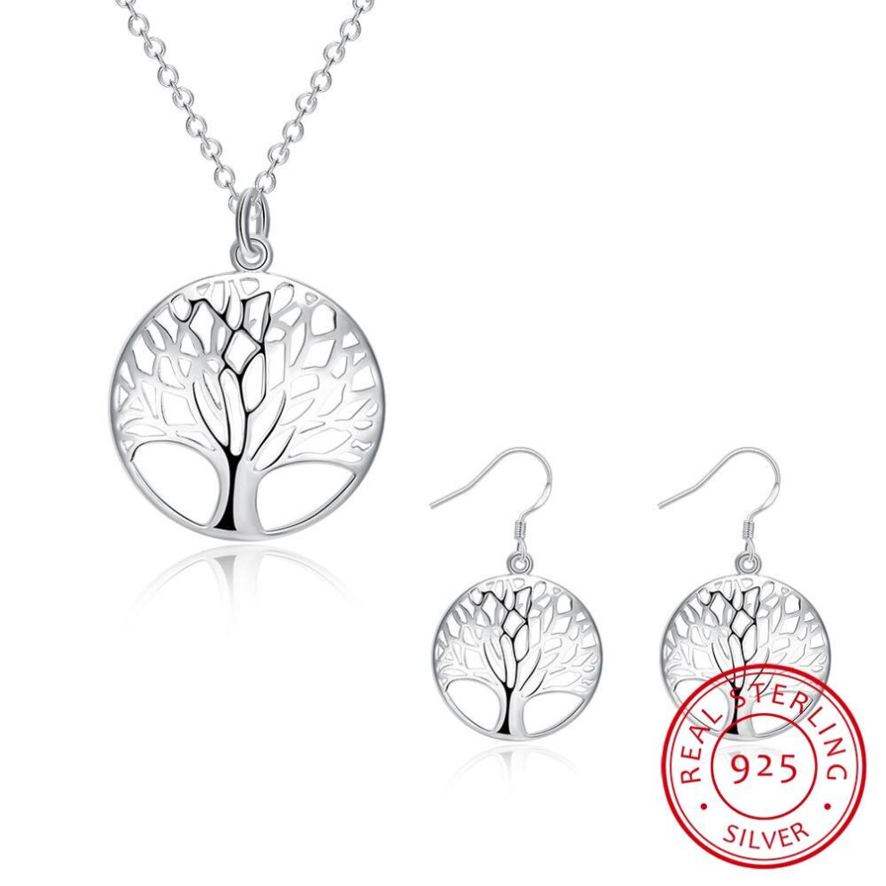 Wisdom Tree Necklace Earring set 925 Sterling Silver Tree of Life Pendant Necklace and Earrings Christmas Jewelry Set