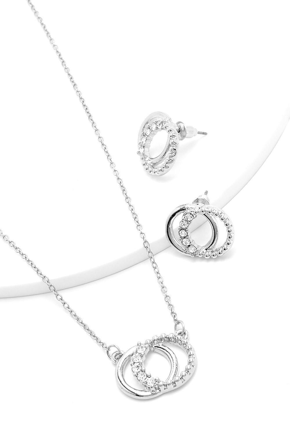 Boohoo Womens Diamante Circle Necklace and Stud Earring Set - Silver - One Size