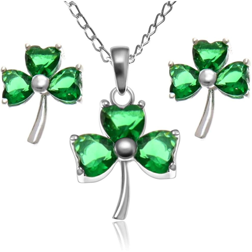 Sterling Silver Shamrock Irish Celtic Necklace and Earring Gift Set with Jewellery Gift Box
