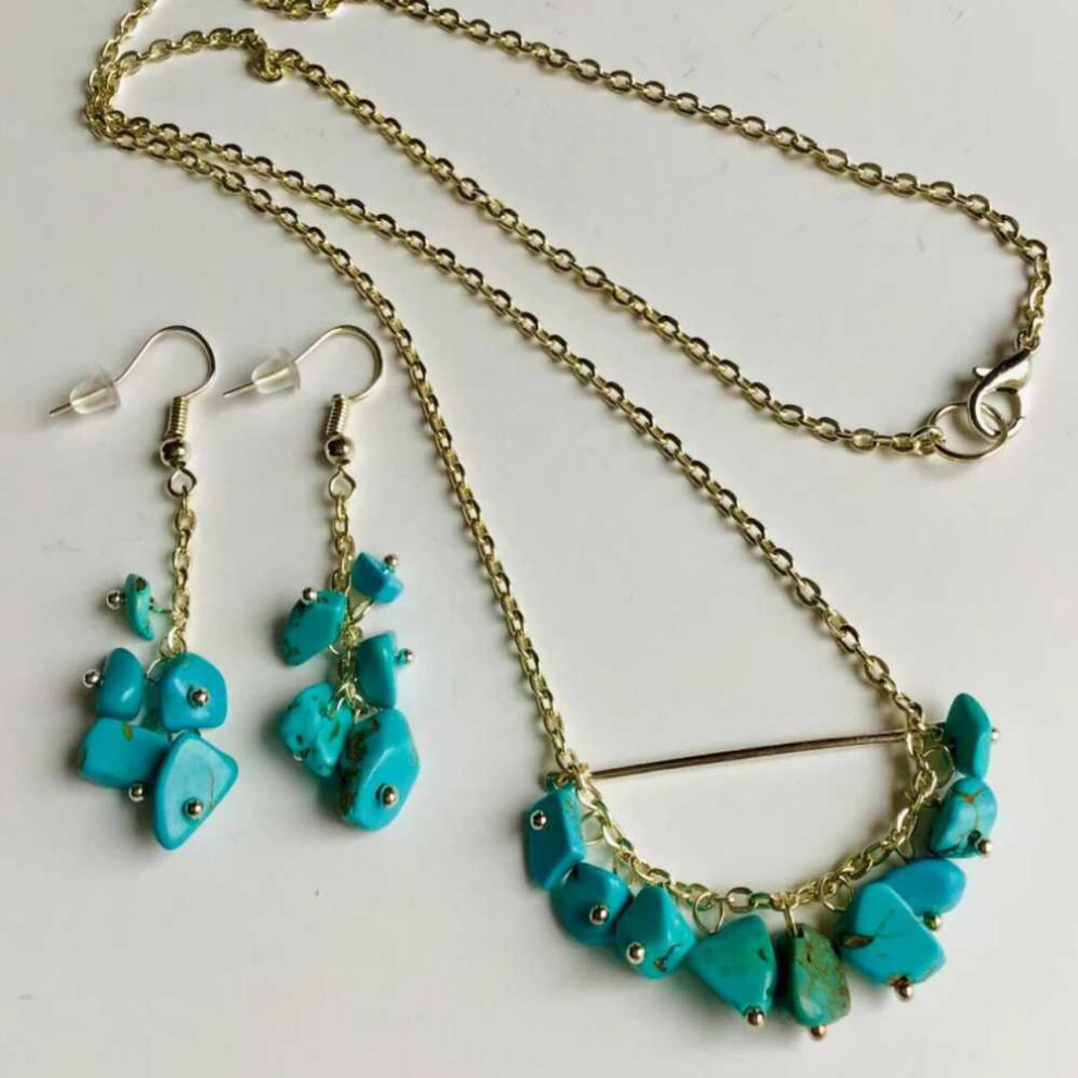 Natural Turquoise Necklace and Earring Set Silver Pendants Crystal Women Amulet Jewelry Necklace Wedding Reiki