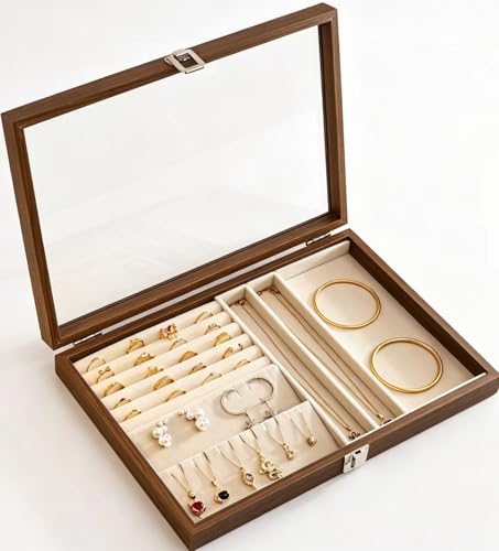 KXQYIKYI Jewellery Box Wooden Jewelry Collection Storage Box with Drawer for Bracelets Earring Jewelry Box,