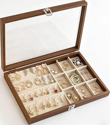 Earring Jewelry Organizer Box with 1-8 Drawers, Wood Jewelry Storage Multiple Display Holder for Earrings Ring Bracelet(1 Layer M)