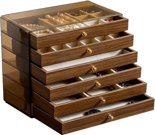 Earring Jewelry Organizer Box with 1-8 Drawers, Wood Jewelry Storage Multiple Display Holder for Earrings Ring Bracelet(6 Layer)