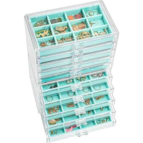 ProCase Earring Holder Organizer Jewelry Box with 10 Drawers, Acrylic Clear Earring Case with Adjustable Velvet Trays for Women - Aqua,10 Layers