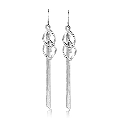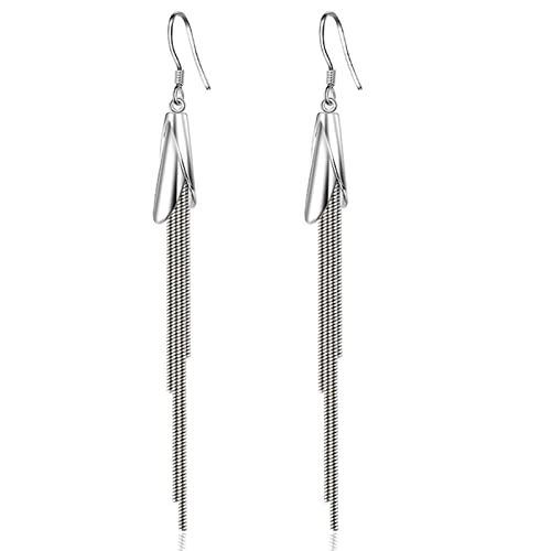 Women Silver Earrings, Double Earrings Long Tassel Rhombus with RoundWhite Gold Plated Earring Piercing Kit
