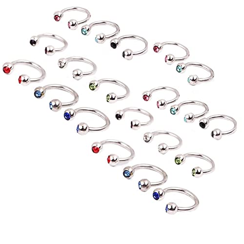 FUYOAL 20 Pieces Stainless Steel Nose Studs, Nose Piercing Jewelry Crystal Ball Silver Labret Tragus Earring Piercing Bars Set Unisex Gift for Women Men