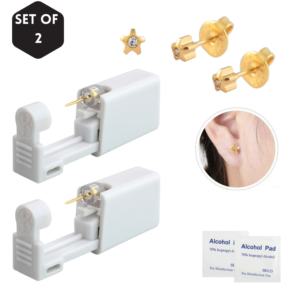 2 Pack Self Ear Piercing Gun Earring Disposable Piercing Kit No Pain Easy Use Ea