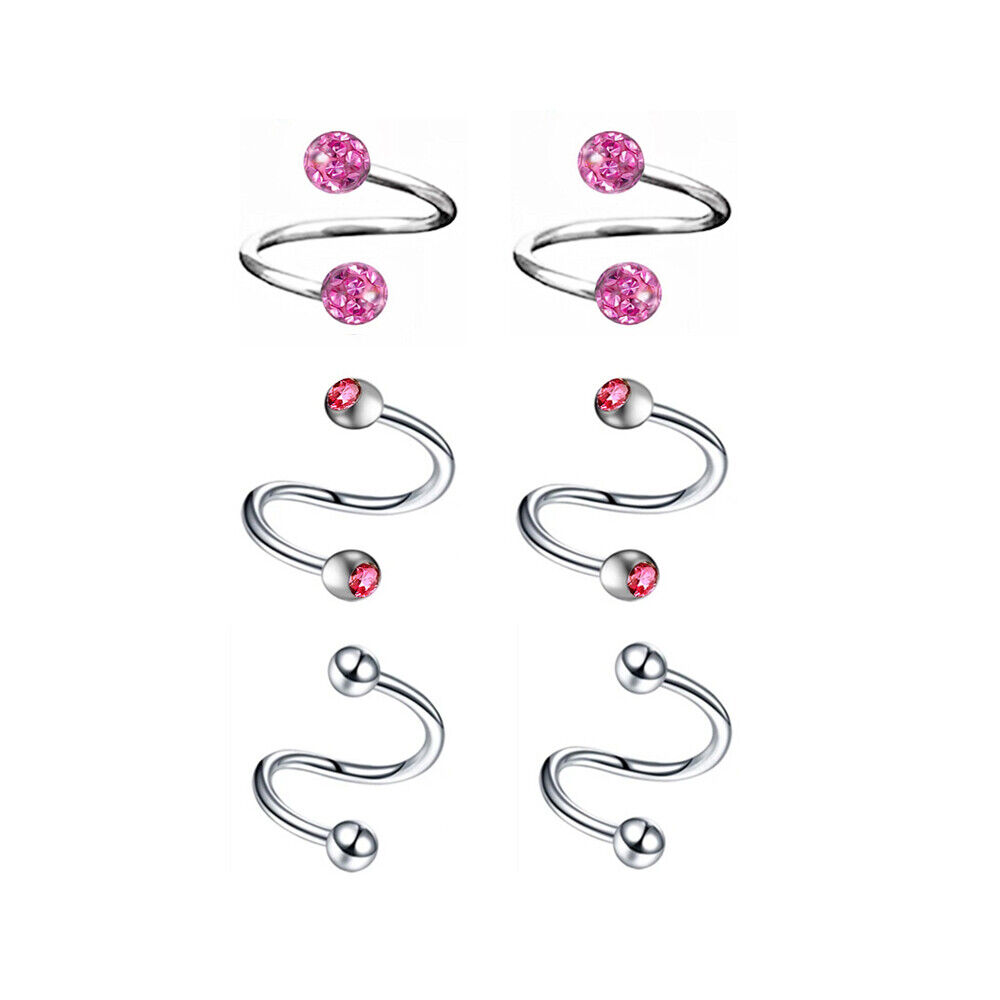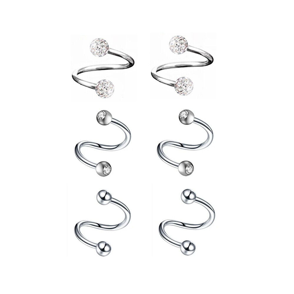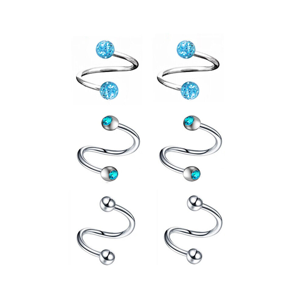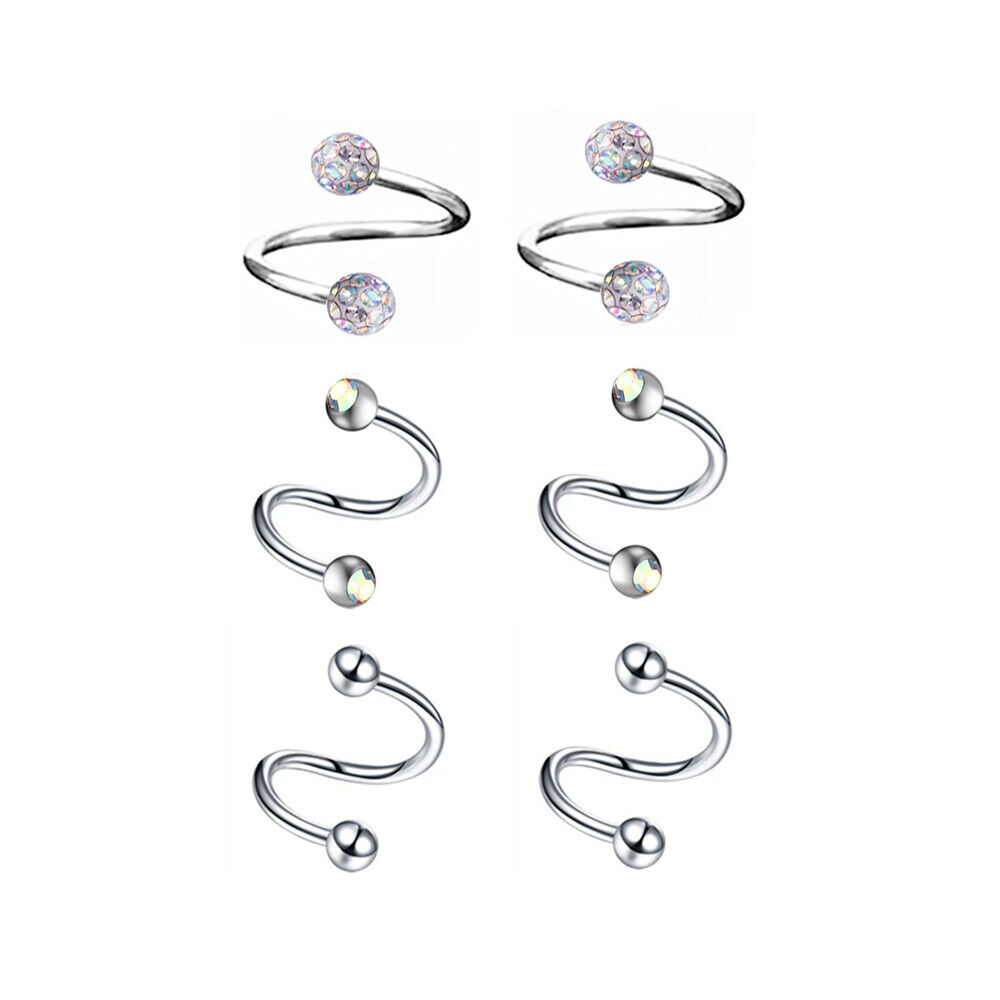 6pc Crystal Twist Ear Cartilage Helix Stud Earring Spiral Piercing Jewellery Set