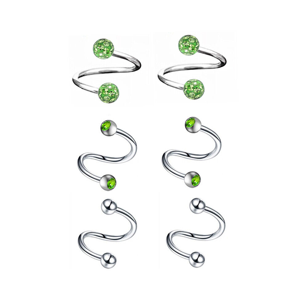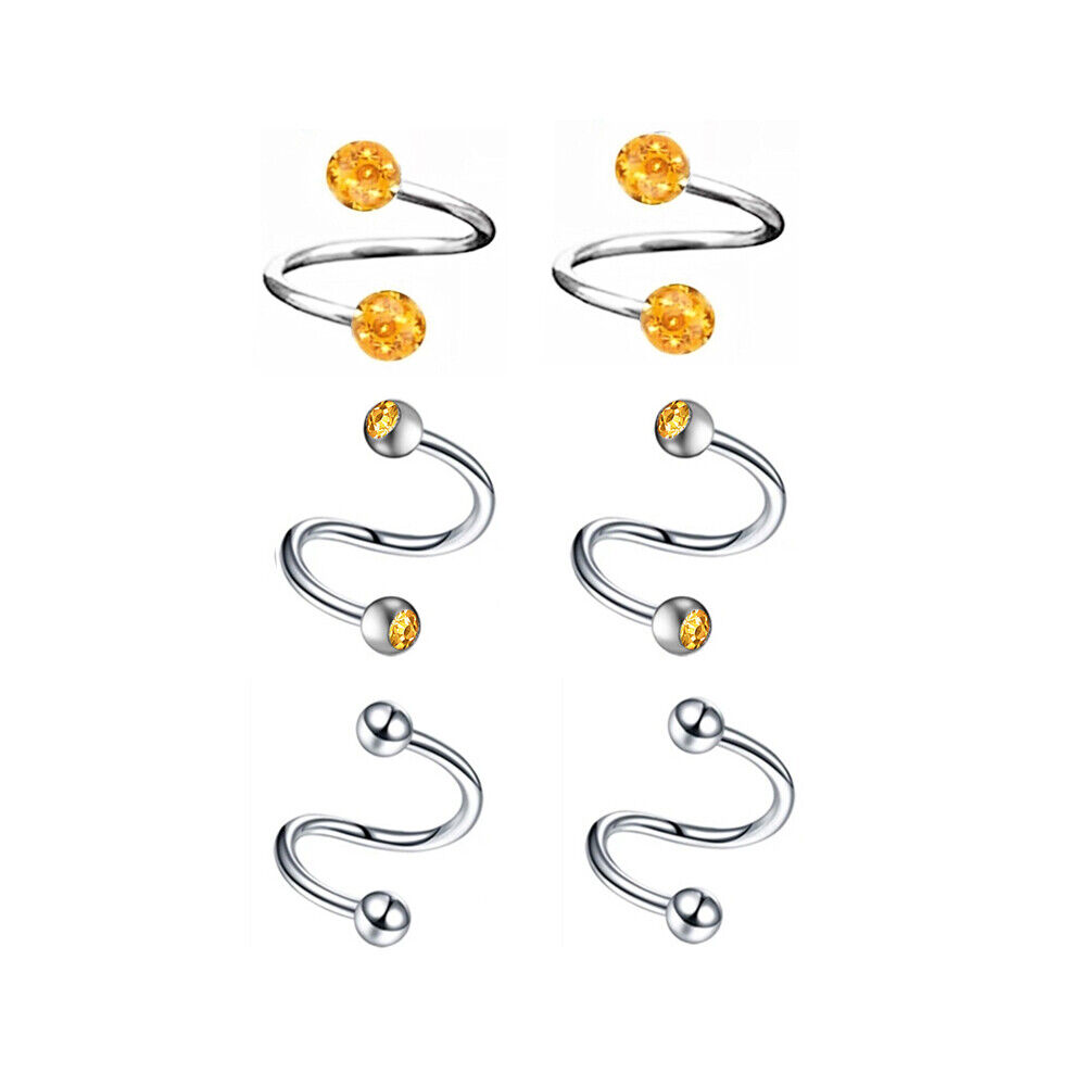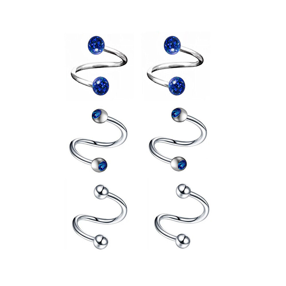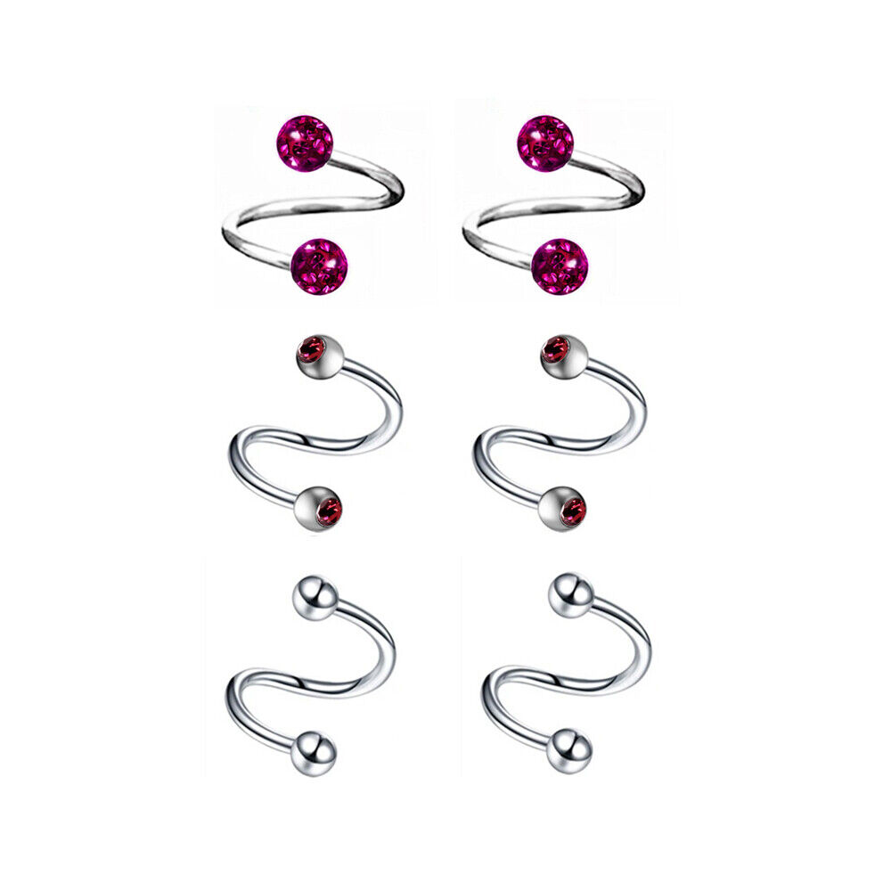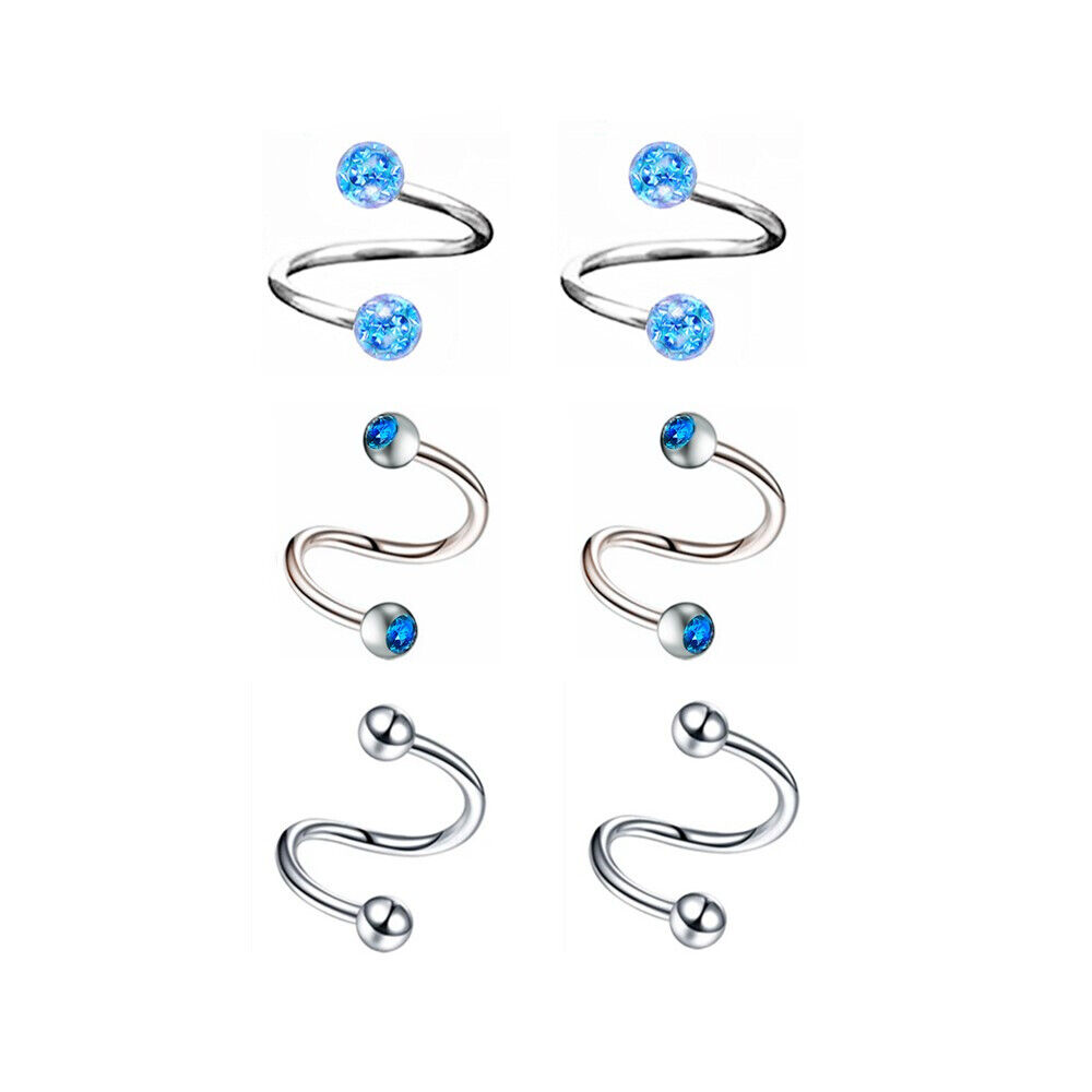 6pc Crystal Twist Ear Cartilage Helix Stud Earring Spiral Piercing Jewellery Set