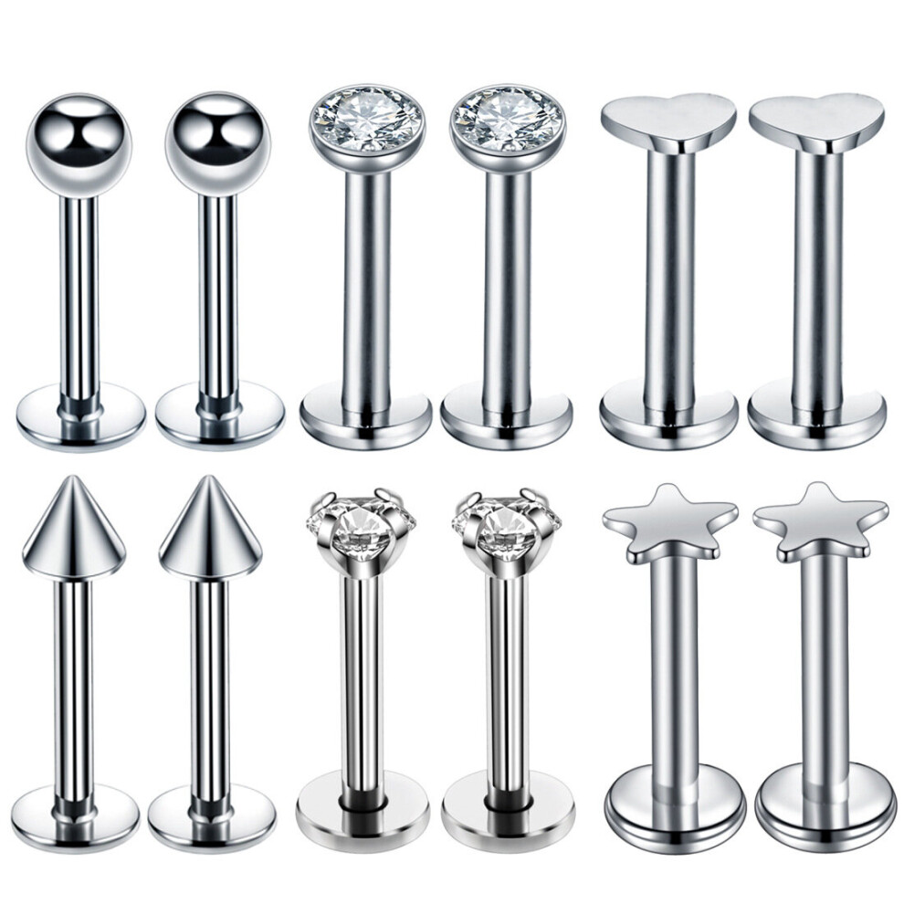 12PC Crystal Labret Piercing Set 16G Heart Tragus Piercing Earring Lot Conch Piercing Set Lip Labret Stud Pack Lobe Earring Bulk