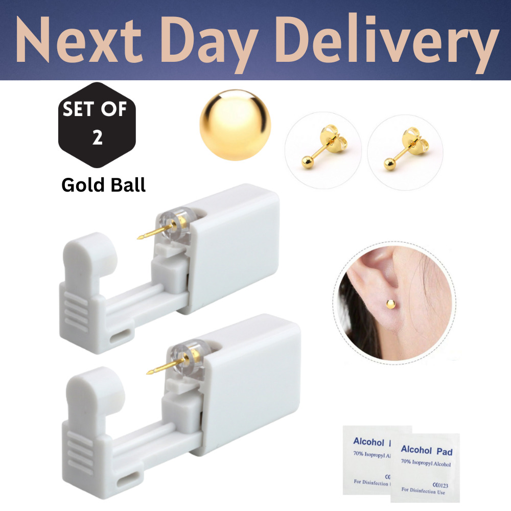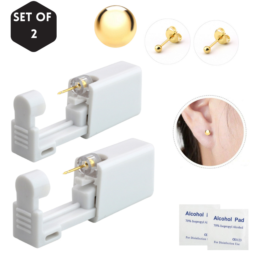 Suskriyocic 2 Pack Self Ear Piercing Gun Kit with Built-in Earring Disposable Ear Piercing Gun Asepsis No Pain Safety Self Ear Piercing Gun Kit Tool for Girl Women Men Golden