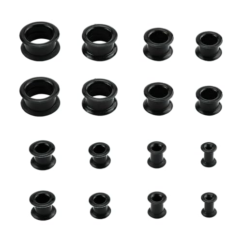 LORSENG 16 PCS Ear Stretching Kit Soft Silicone Ear Tunnels Gauge Earrings, Double Flared Saddle Earring Ear Ring Stretcher Piercing Stretcher Plugs Ear Expanders Ear Spacers for Men Women (Black)