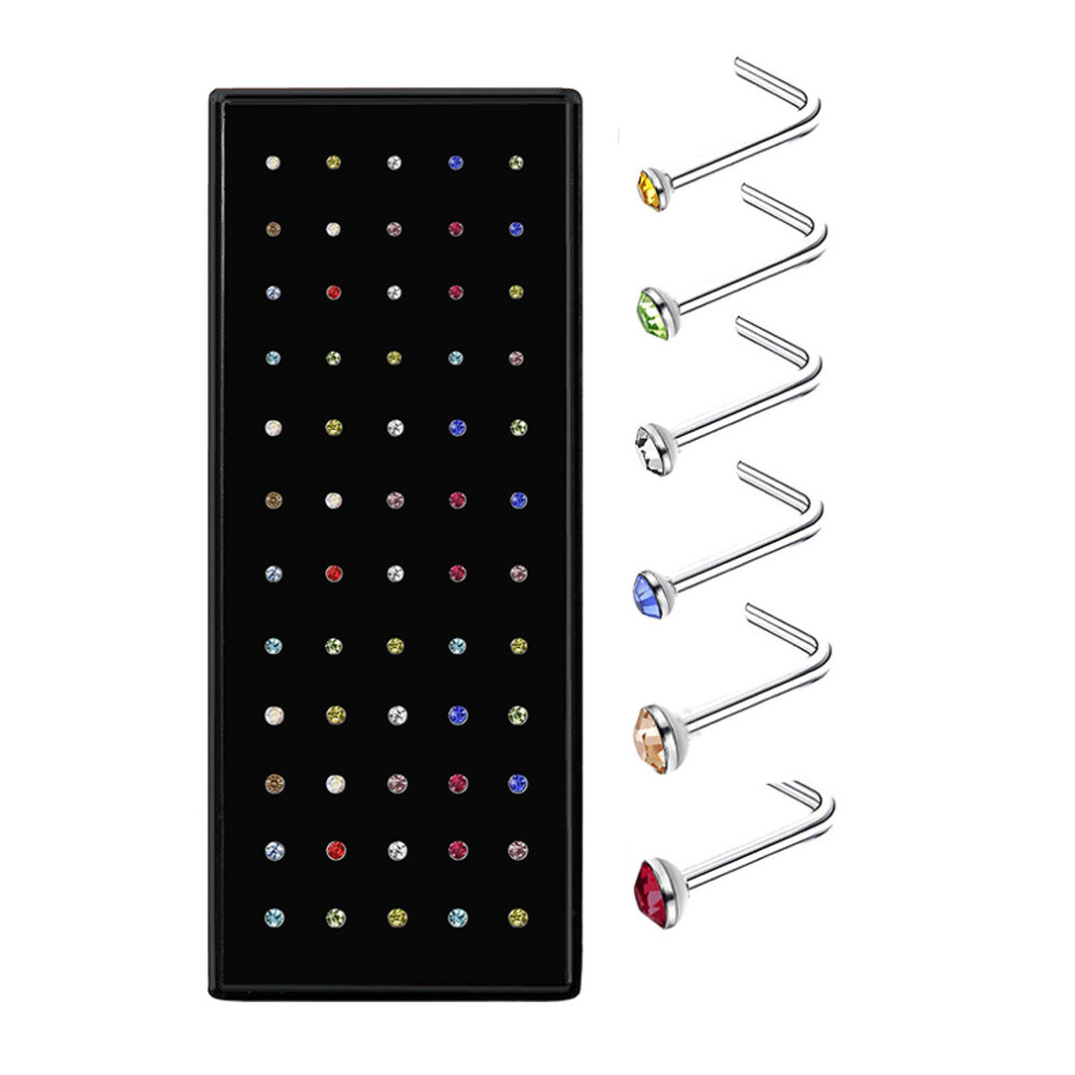 60 Pieces Stainless Steel Nose Studs, L Shaped Hypoallergenic Nose Ring Labret Tragus Earring Piercing Bars Set Unisex Gift for Women Men1.5/2.0/2.5mm