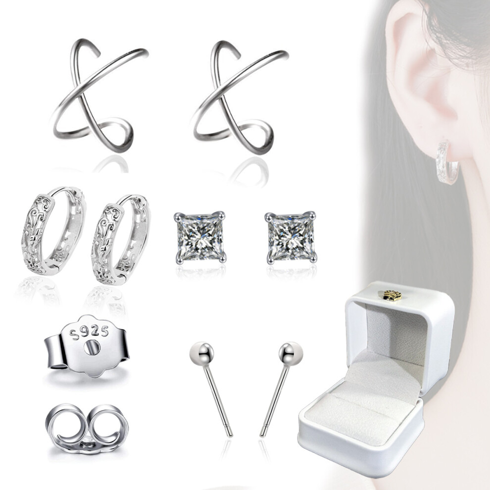 (silver) Personalized Womens Jewelry Tragus Piercing Earring Set Crystal Party