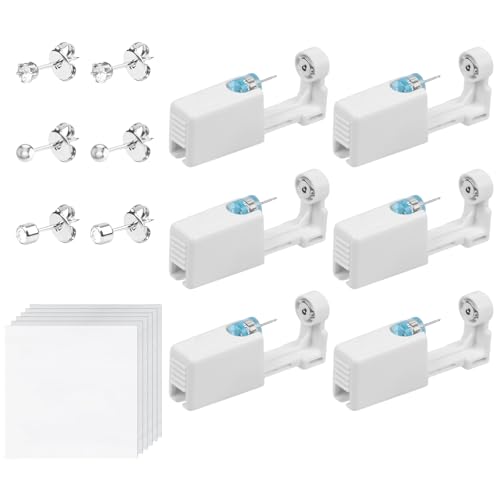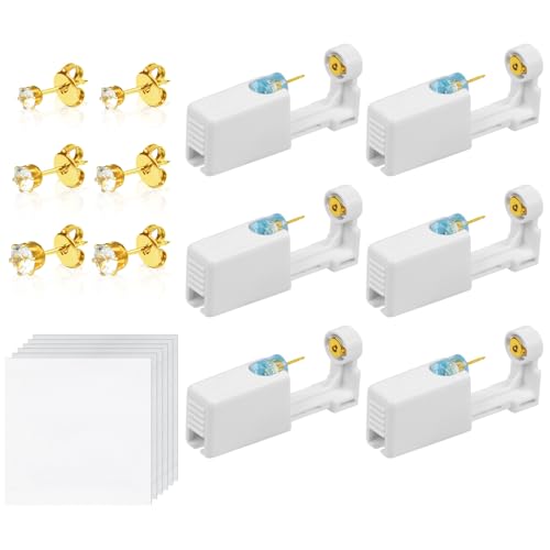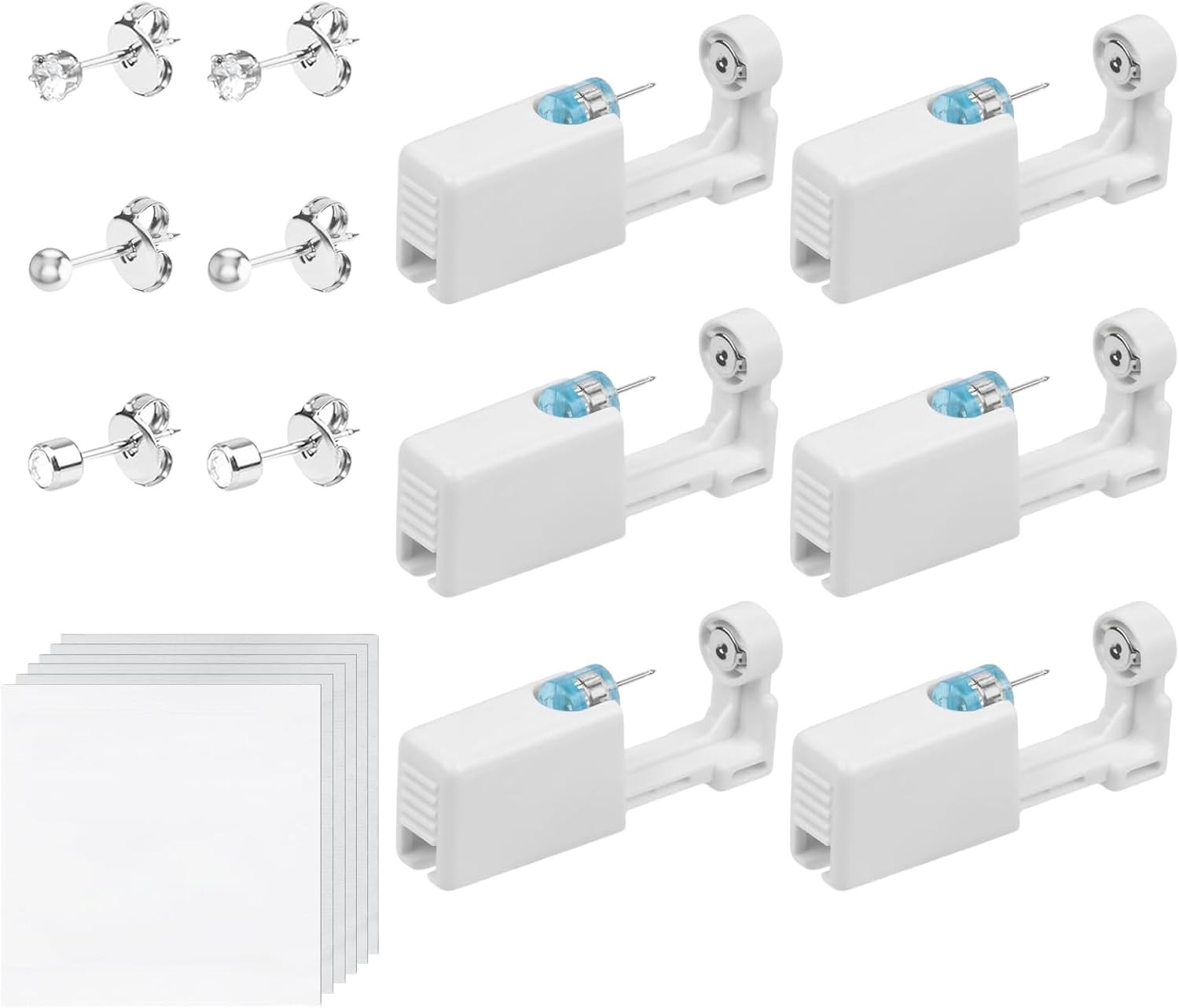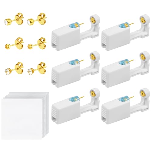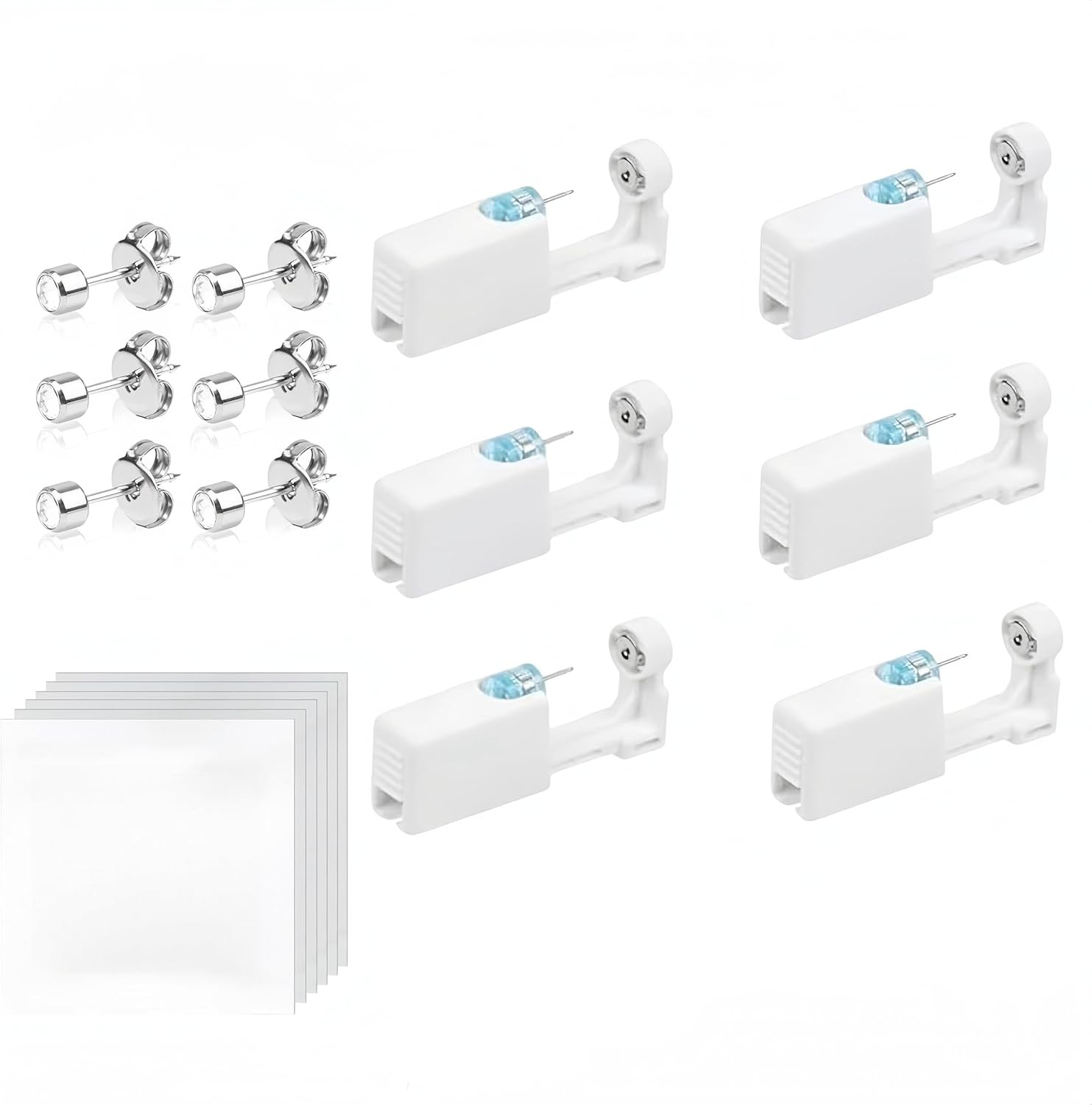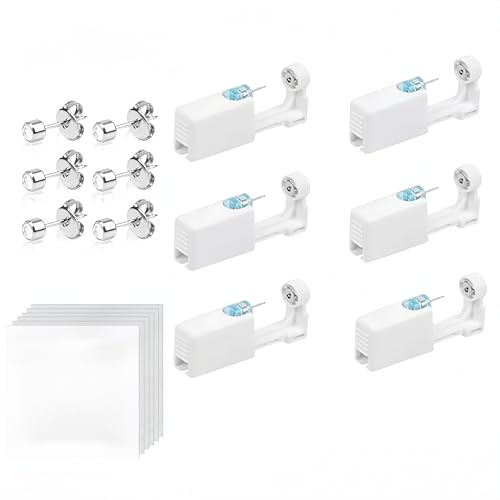Aucuu 6 Pack Ear Piercing Gun, Painless Self Ear Piercing Kit, Safety Asepsis Earring Ear Stud Gun Kit Tool with 6 Ear Studs for Girls Women Men, White