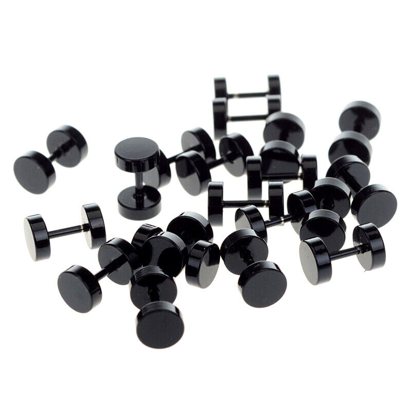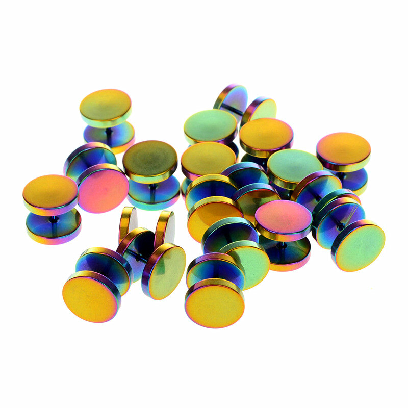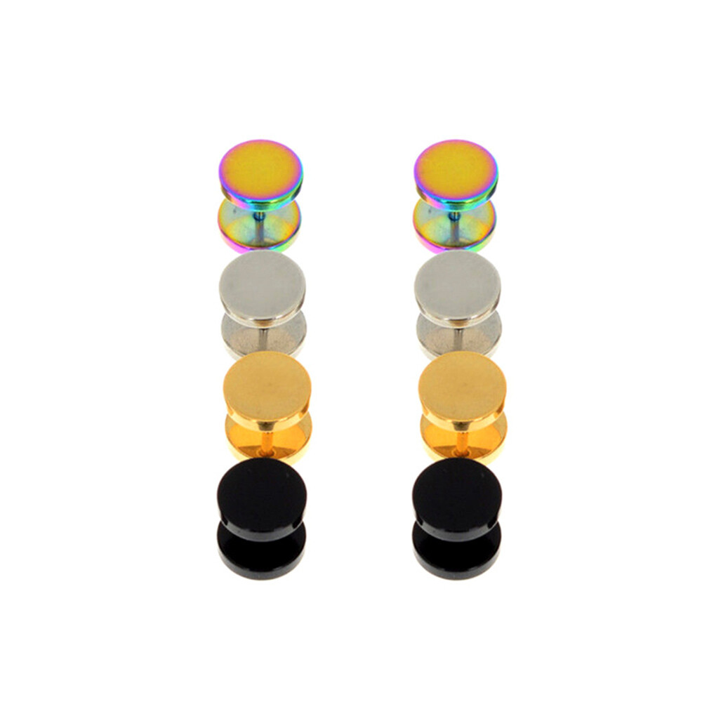 8X Multi Colour Steel Cylinder Fake Ear Stud Plug Earring Cartilage Piercing Set