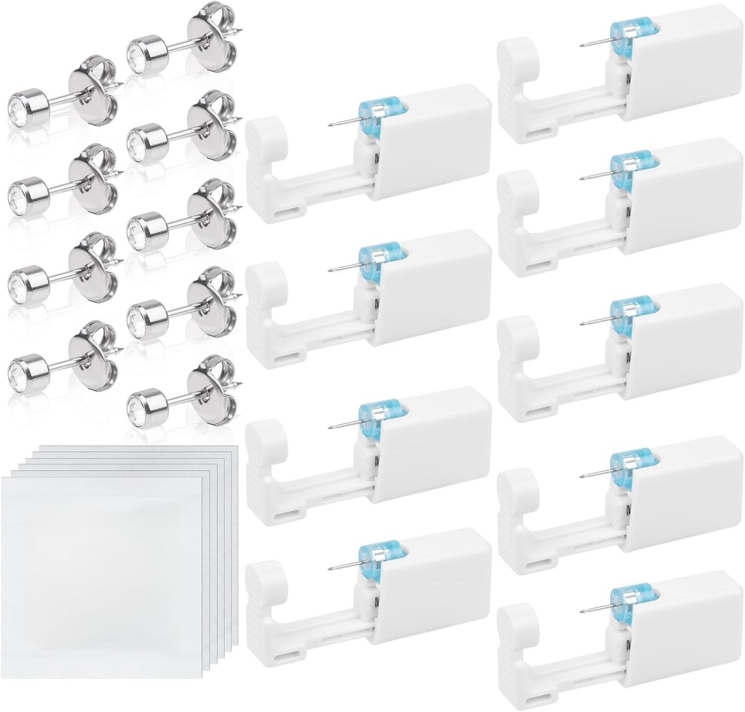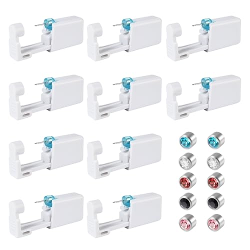 10 Pack Ear Piercing Gun, Disposable Ear Piercing Kit Ear Gun with Earring Studs, Painless Safety Self Ear Piercer Gun Kit Tool for Girls Women Men Mixed Colours