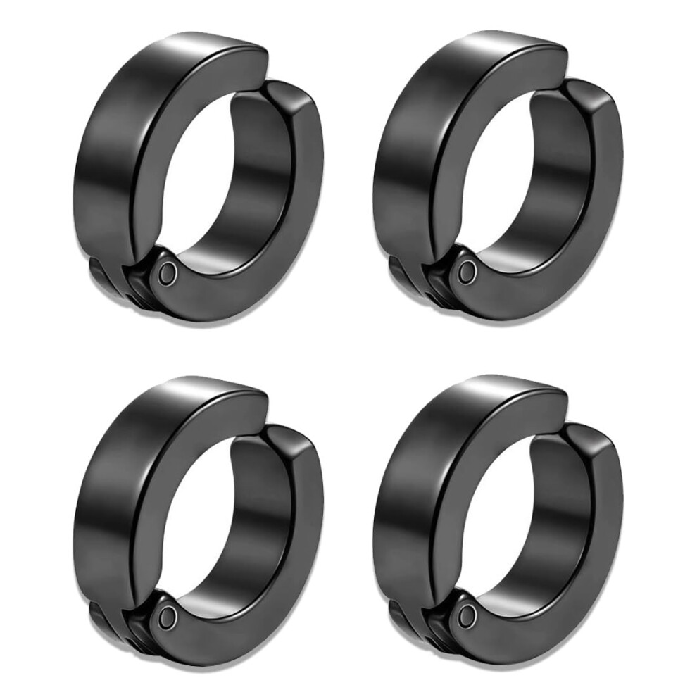 Black Stainless Steel Clip-On Earrings - 2 Pairs - Unpierced No Piercing Earring Set - For Men And Women - Hip Hop Punk