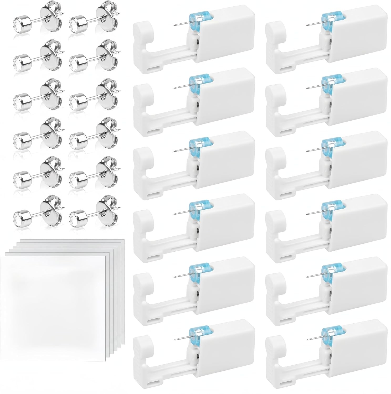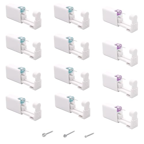 Musiook 12Pcs Disposable Ear Piercing Kit with Stud Earrings, Self Ear Piercing Gun Tool for Women Men Girls Boys, Painless and Safe Earring Piercing Set for Home or Salon Use