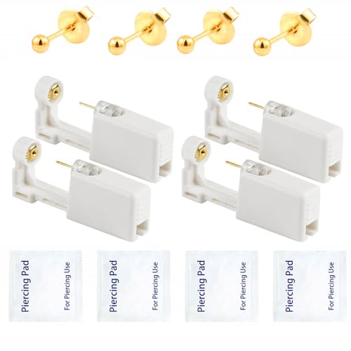 Kuesn 4 Pack Self Ear Piercing Gun Earring,Disposable Piercing Kit No Pain Easy Use Ear Piercing Gun Kit Tool with Stud and With Alcohol Pad (Gold)