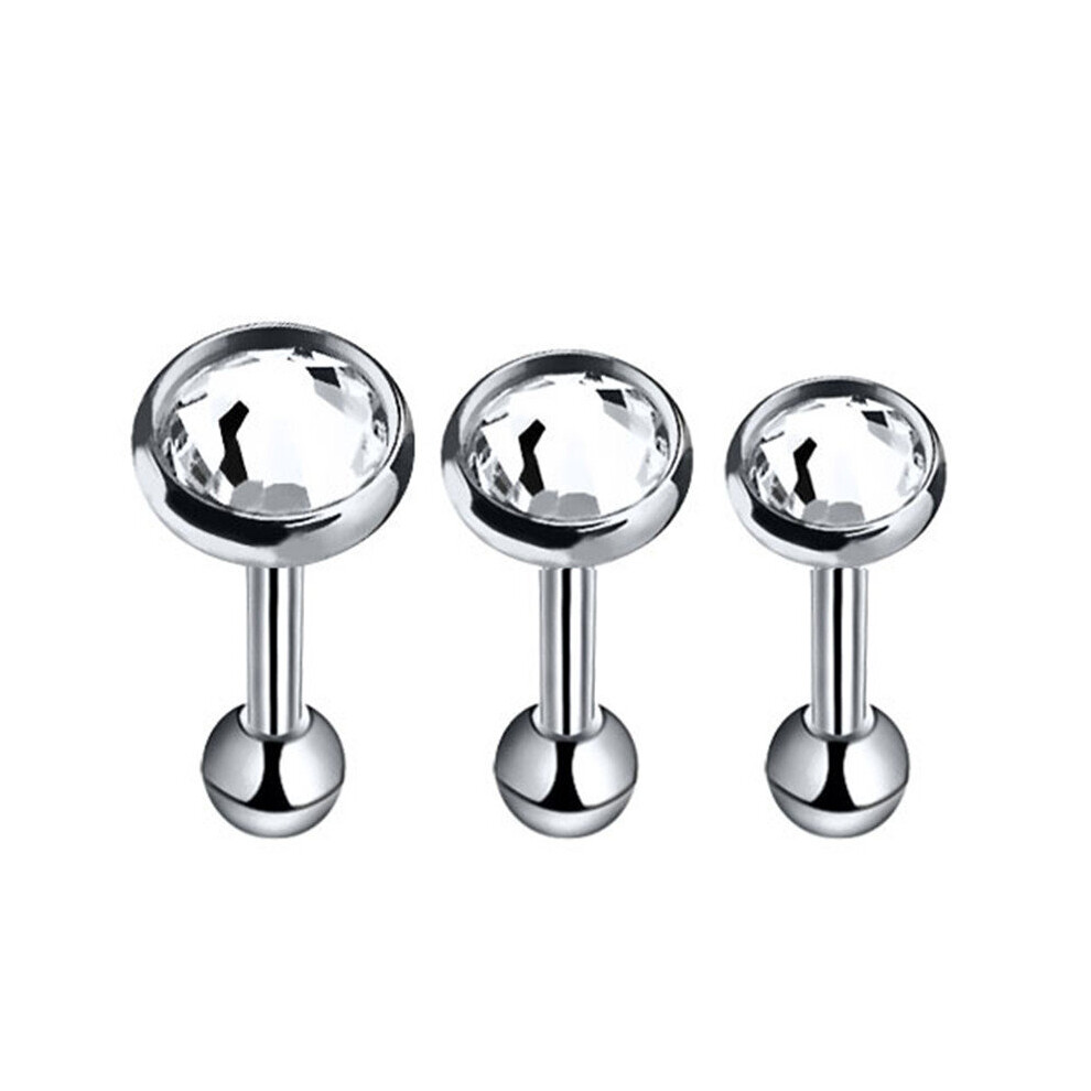 3Piece Stainless Steel Crystal Ear Cartilage Piercing Earring Set 16G Zircon Labret Lip Piercing Lot Tragus Piercing Earring Set