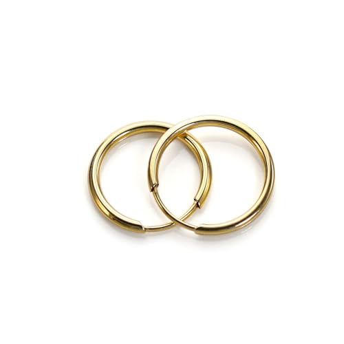 18K PVD Gold Plated Stainless Steel Small Hoop Earrings – 8mm Inner Huggie Hoops, Polished Minimalist Sleepers (Vacuum Plating)