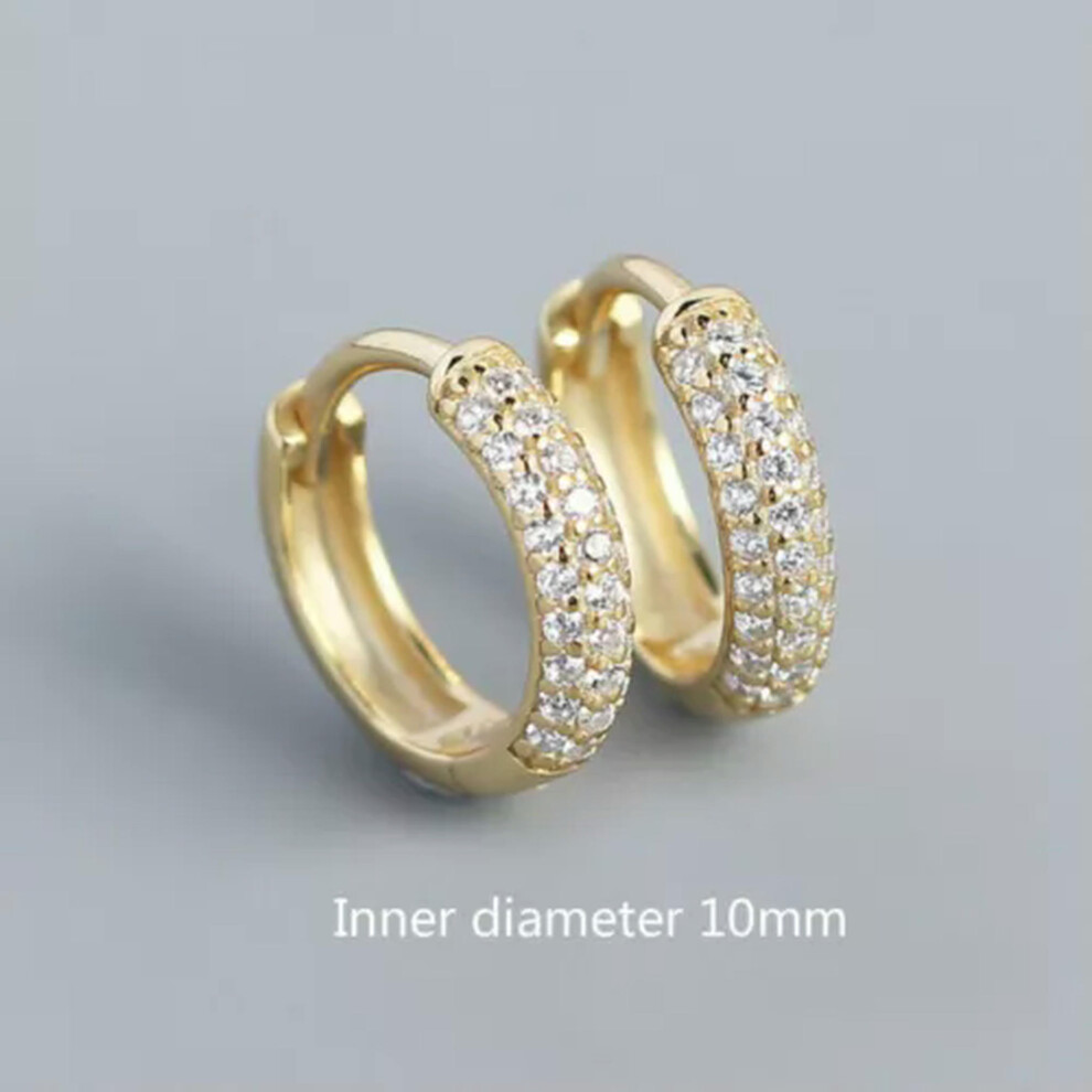 3 Pairs Cubic Zirconia Hoop Earrings Gold Plated Sterling Silver Small Cartilage Hoops Hypoallergenic Nickel-Free Sleepers for Helix, Conch, Lobe Ligh