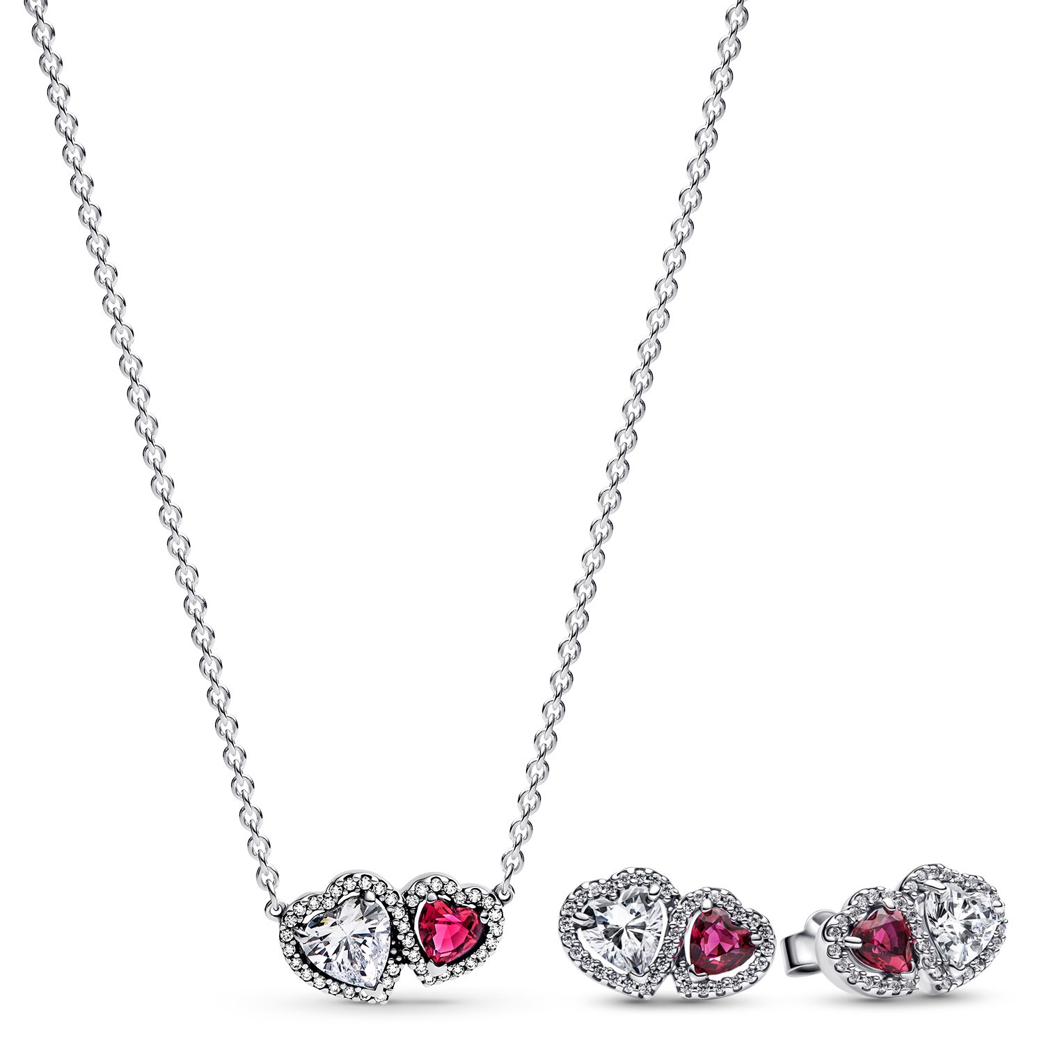Pandora Jewelry Damen-Schmuckset Necklace And Earrings Halo Hearts Two Colored 2