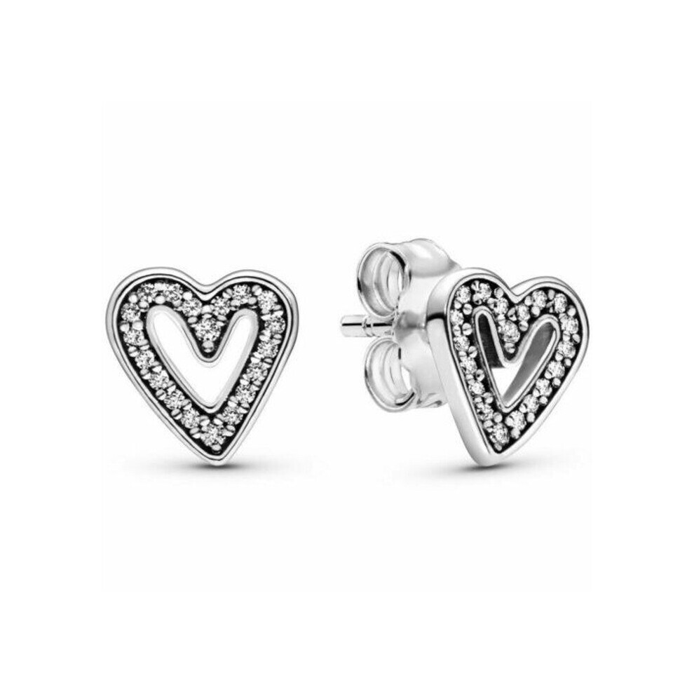 Pandora Sparkling Freehand Heart Stud Earrings 298685C01