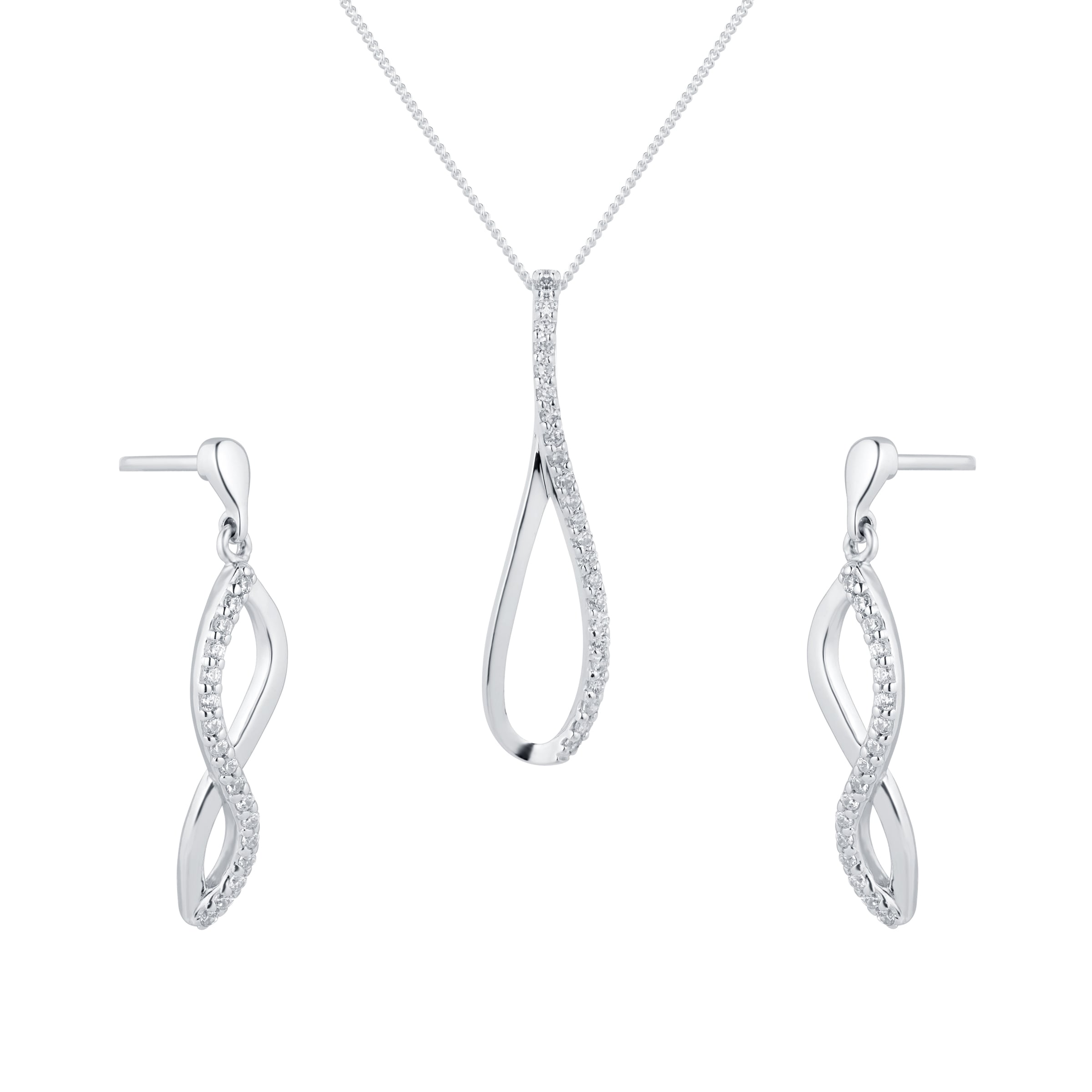 Silver Ribbon Cubic Zirconia Pendant & Earrings Set