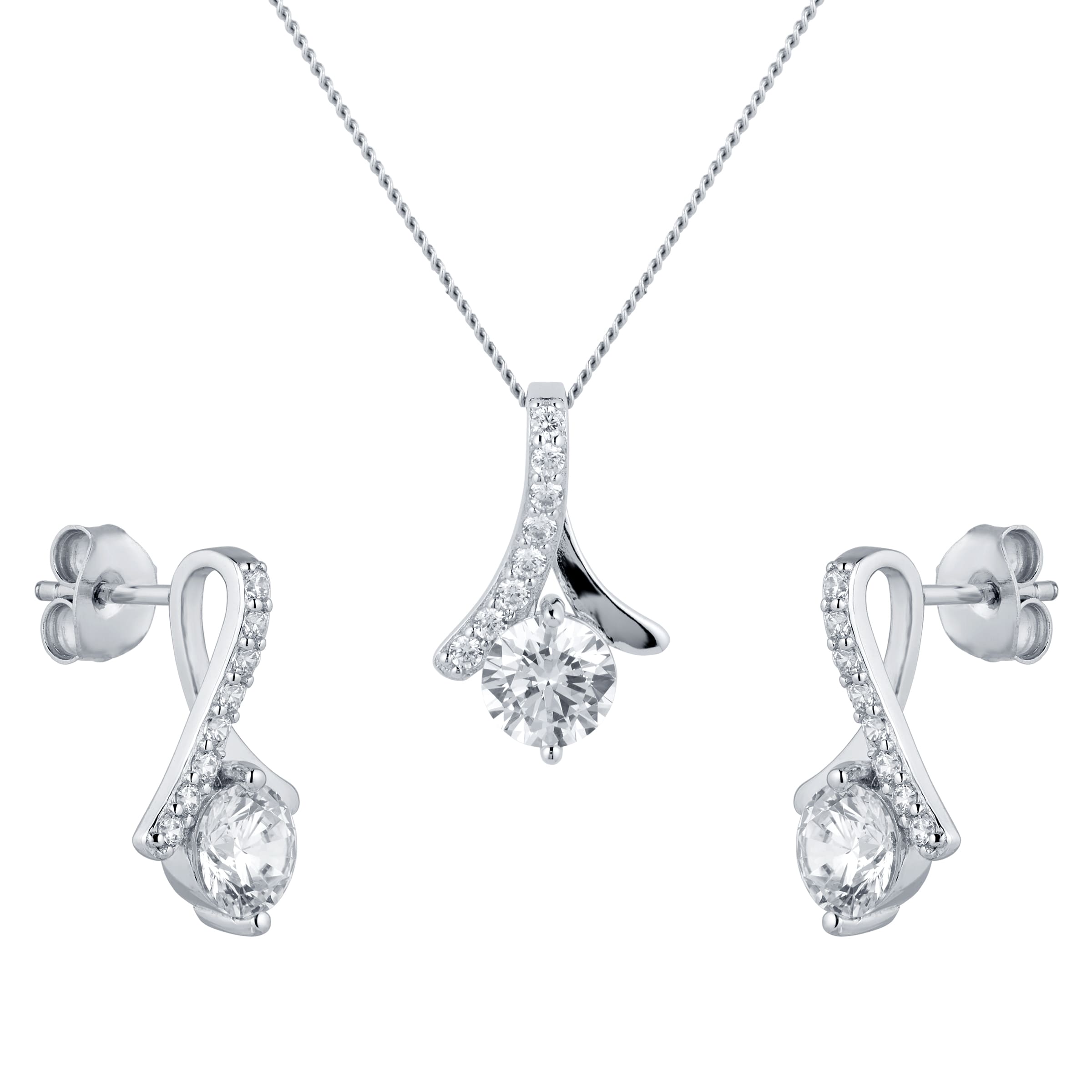 Silver Cubic Zirconia Drop Loop Pendant & Earrings Set