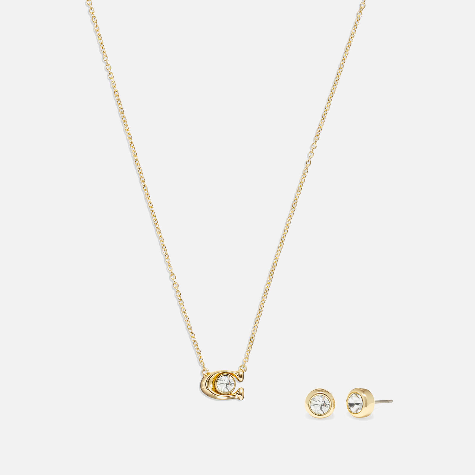 Coach Signature Gold-Tone Necklace and Earrings Set