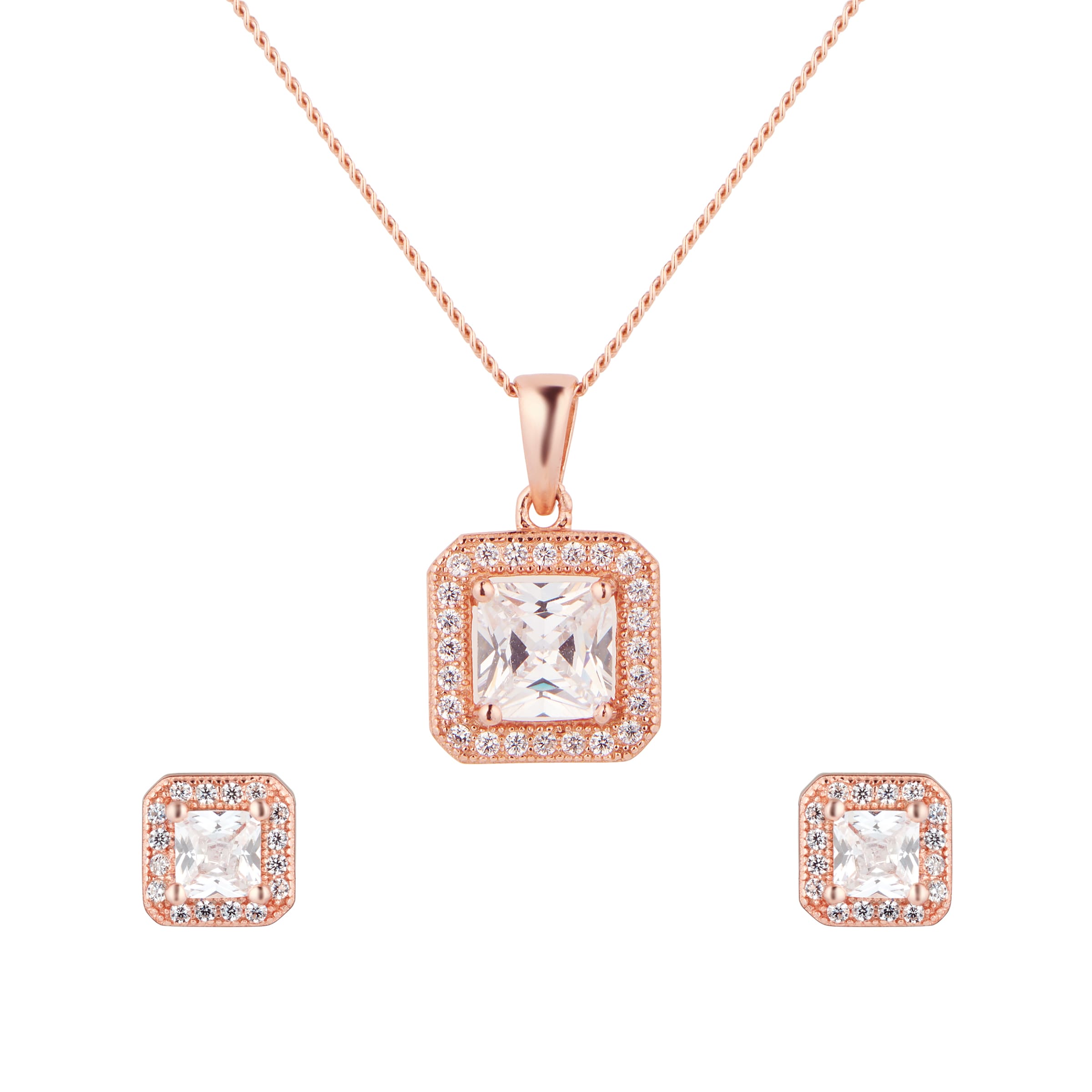 Rose Gold Plated Silver Cushion Cubic Zirconia Necklace & Earrings Set