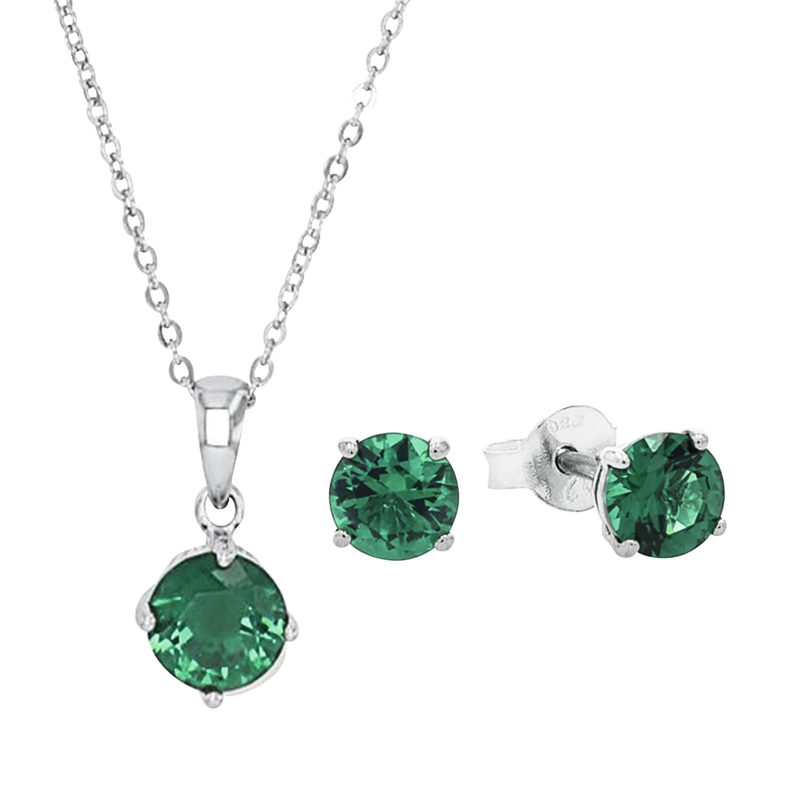 Silver Blue Stone Pendant Necklace & Earrings Set