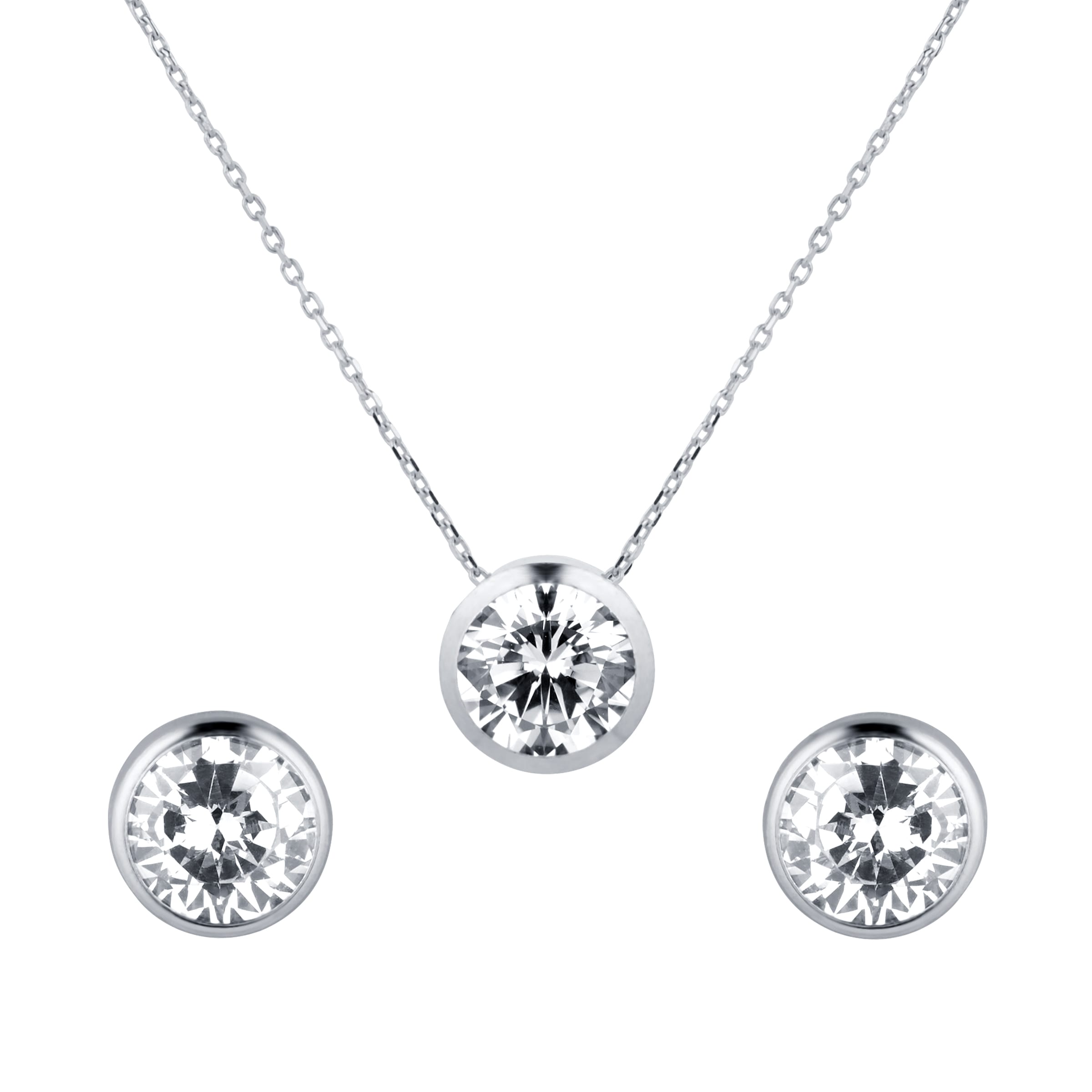 Silver CZ Infinity Earrings Necklace Set - GSET609