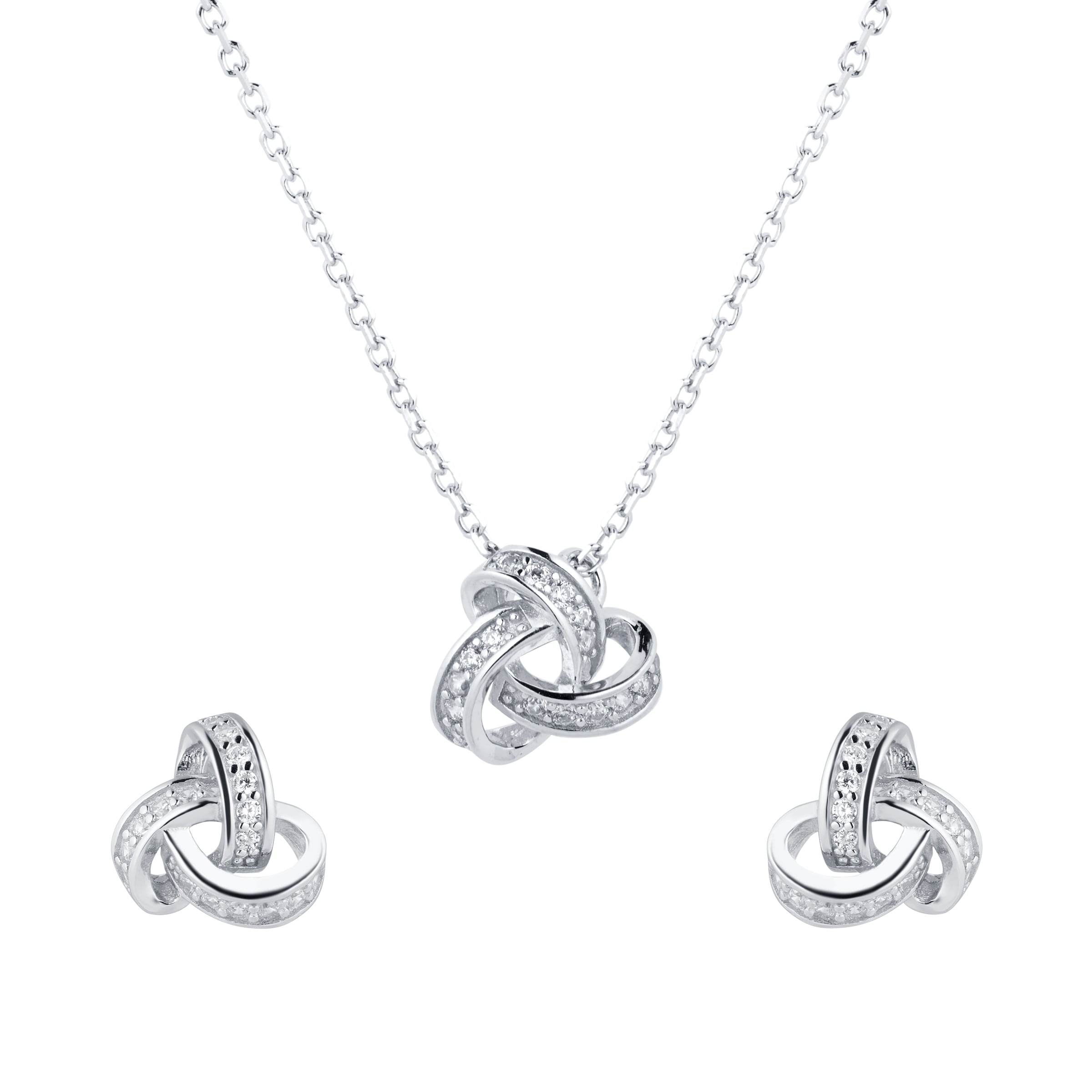 Silver Cubic Zirconia Triple Loop Knot Pendant & Earrings Set