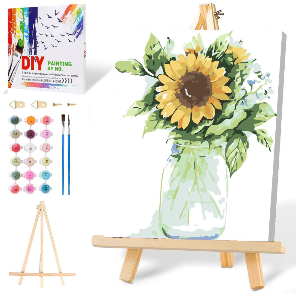Mowana Sunflower Paint by Numbers Kit for Adults-Paint by Numbers for Adults Beginner with Frame and Easel Painting by Numbers for Gift Home Wall Dec
