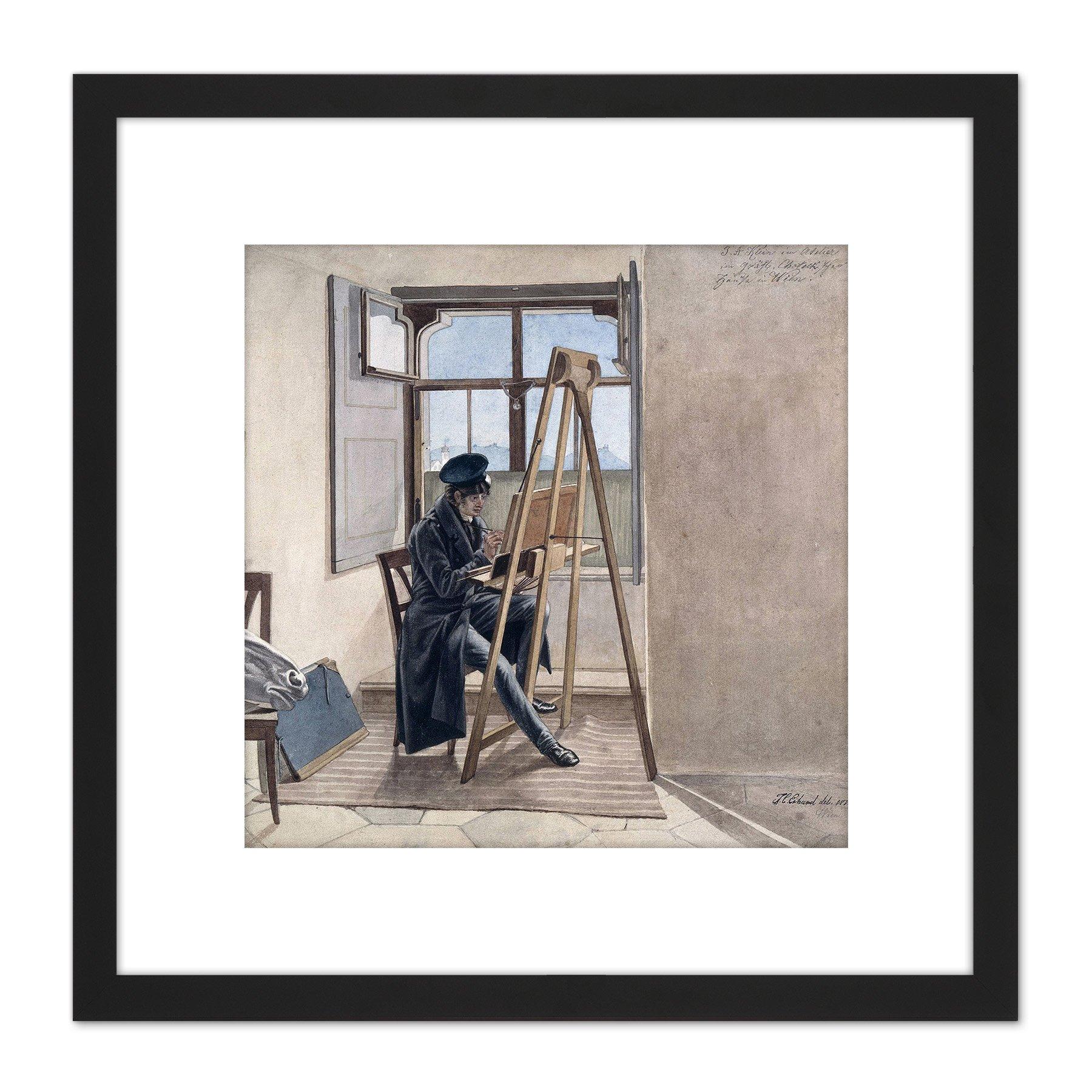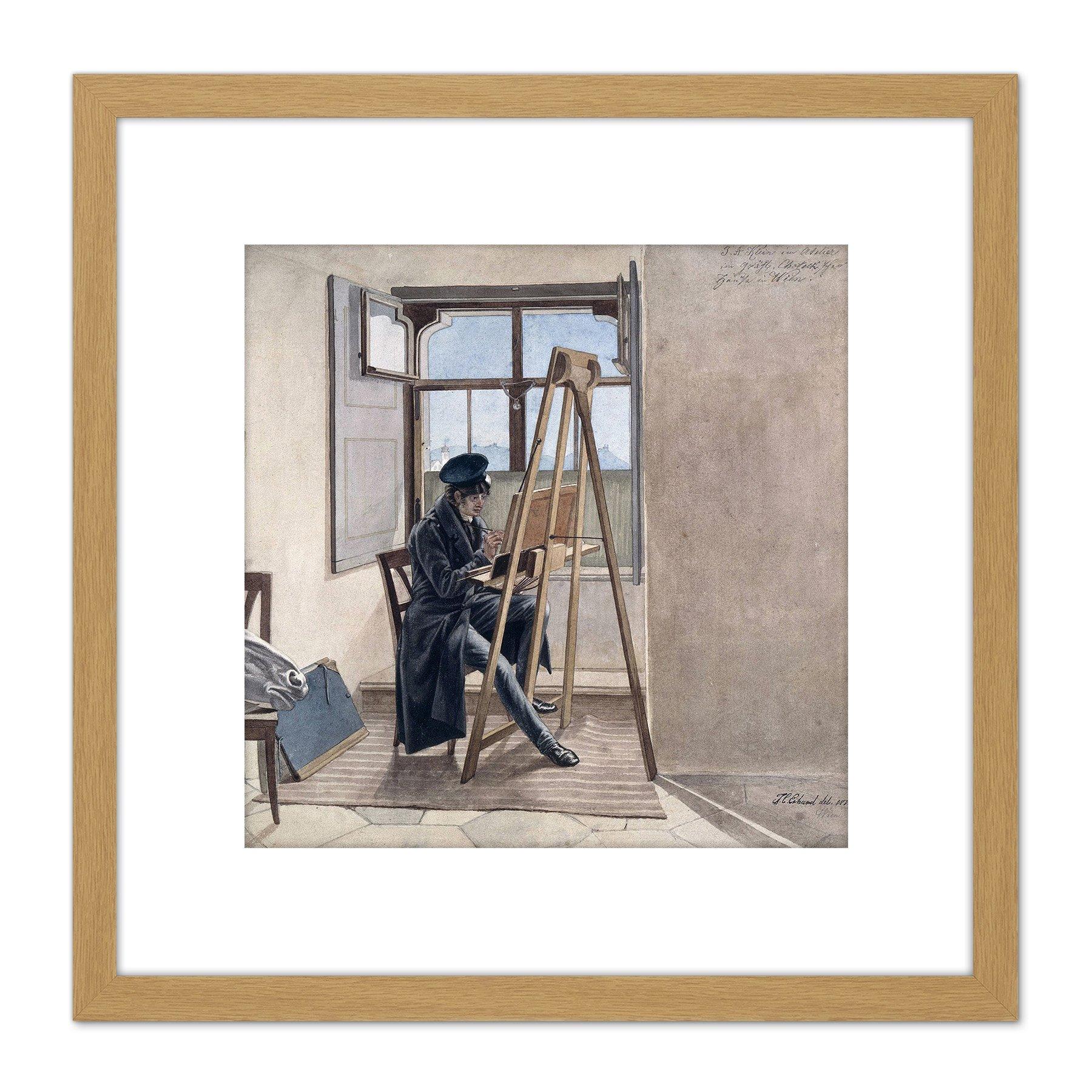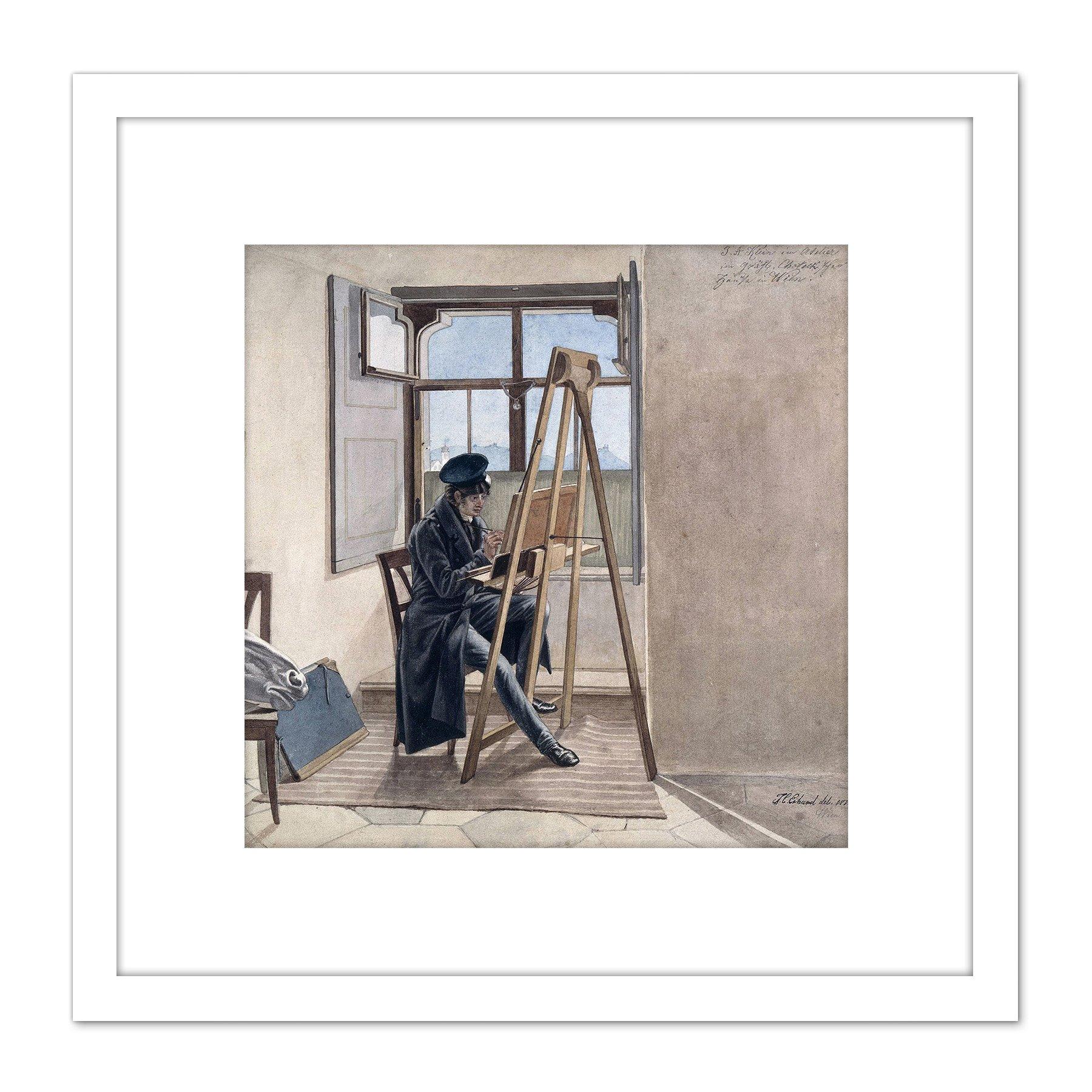 Erhard Portrait Painter Johann Klein At Easel Painting 8X8 Inch Square Wooden Framed Wall Art Print Picture with Mount