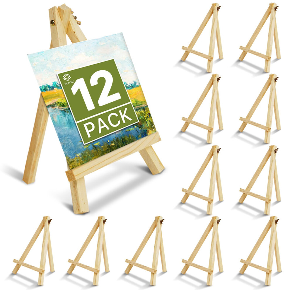 CONDA 12 Pack 9 Inch Wood Easels Easel Stand for Painting Canvases Art and Crafts Tripod Painting Party Easel Kids Student Tabletop Easels for Pai