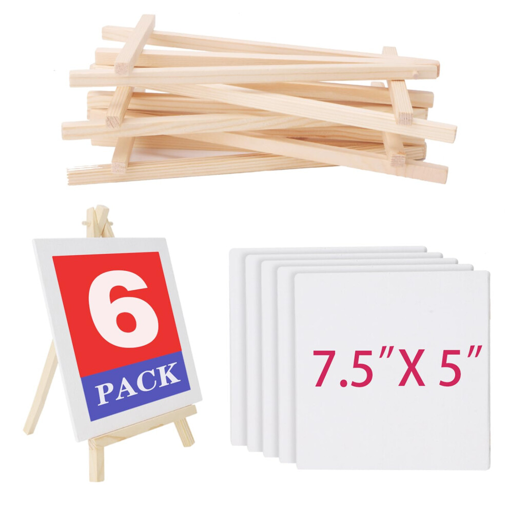 DODHEG 6 Pcs 5 Inch Canvases with 6 Pcs 7.5 Inch Easel Sets, Easel Stand and Painting Canvases for Painting, Crafts, Photos etc.