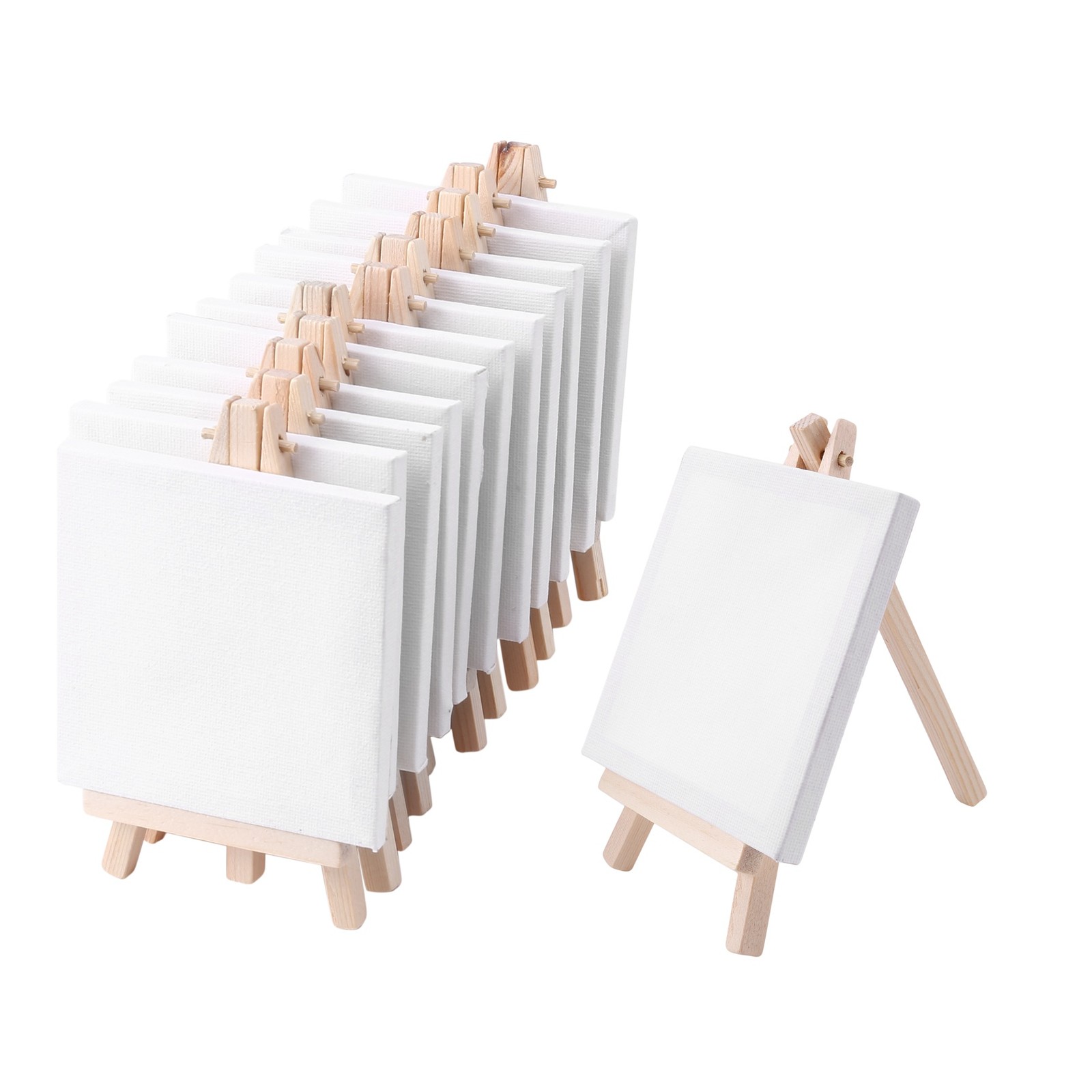 4 By Inch Mini Canvas And 8*16cm Wood Easel Set For Painting Drawing School Student Artist Supplies, 12 Pack