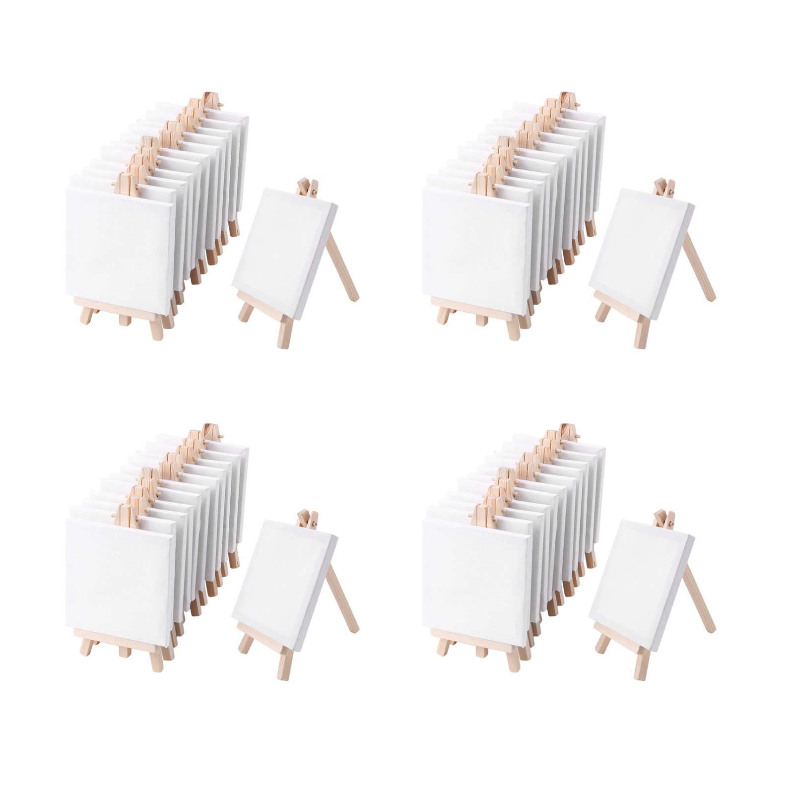 72pc 4 By Inch Mini Canvas and 8 X 16cm Wood Easel Set for Painting Dr