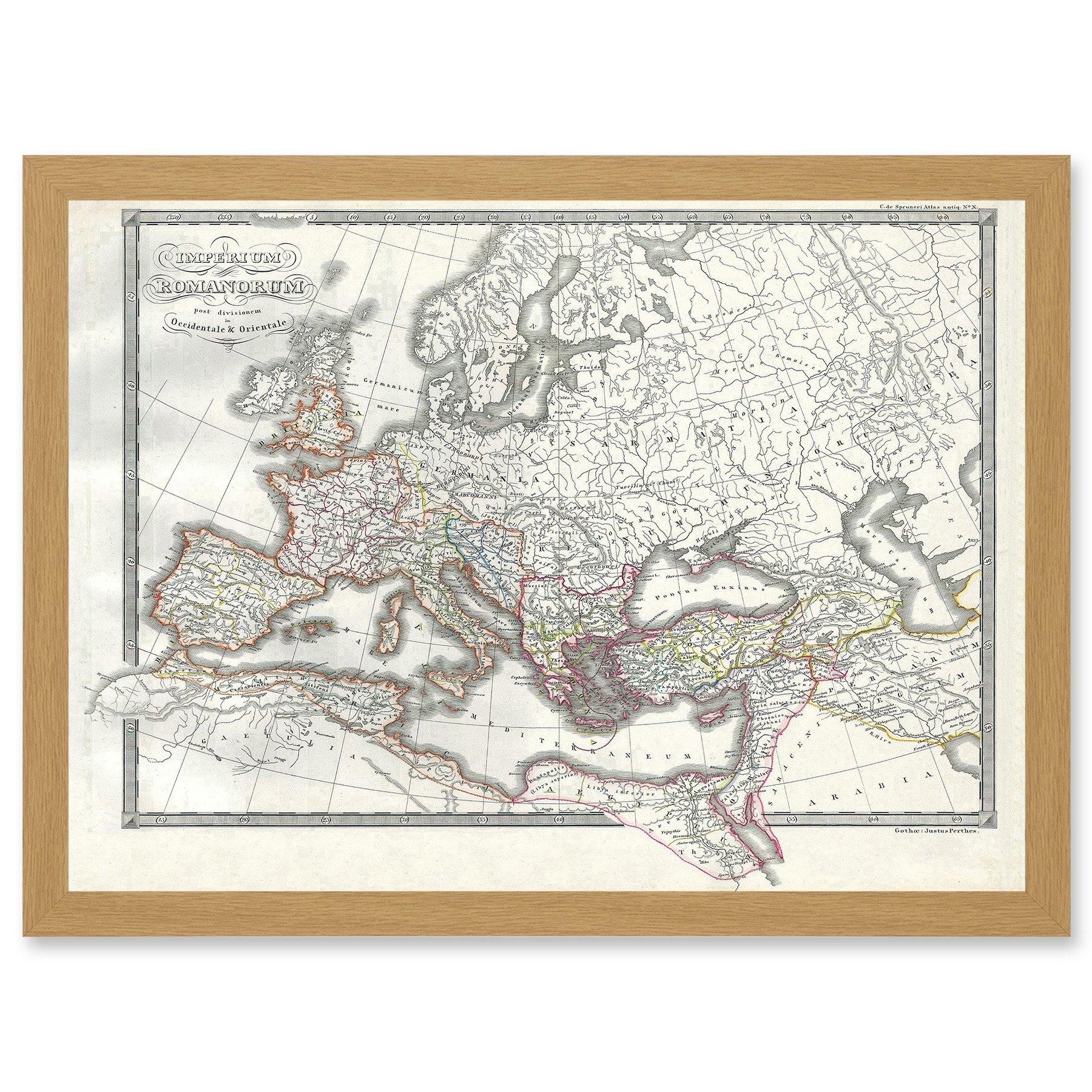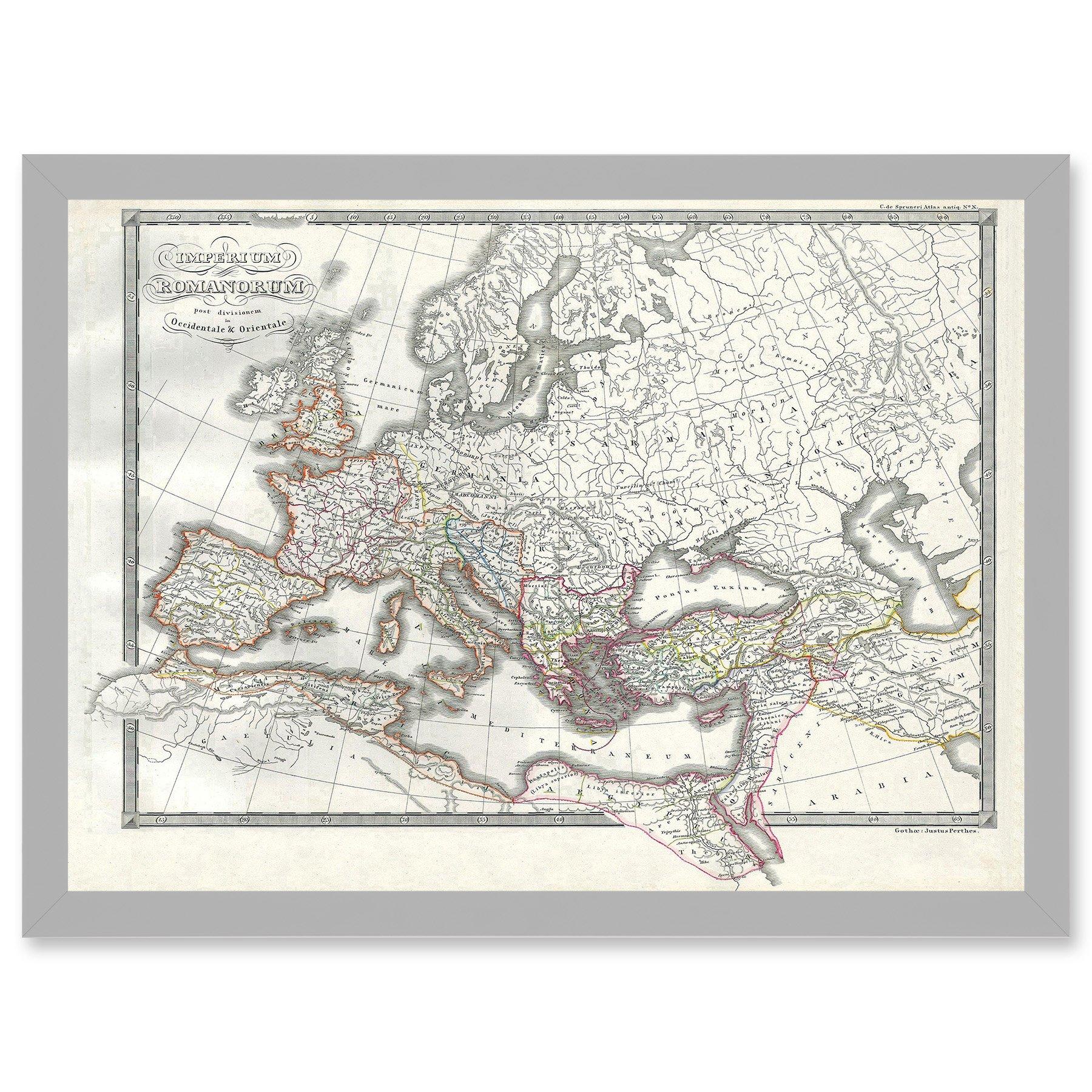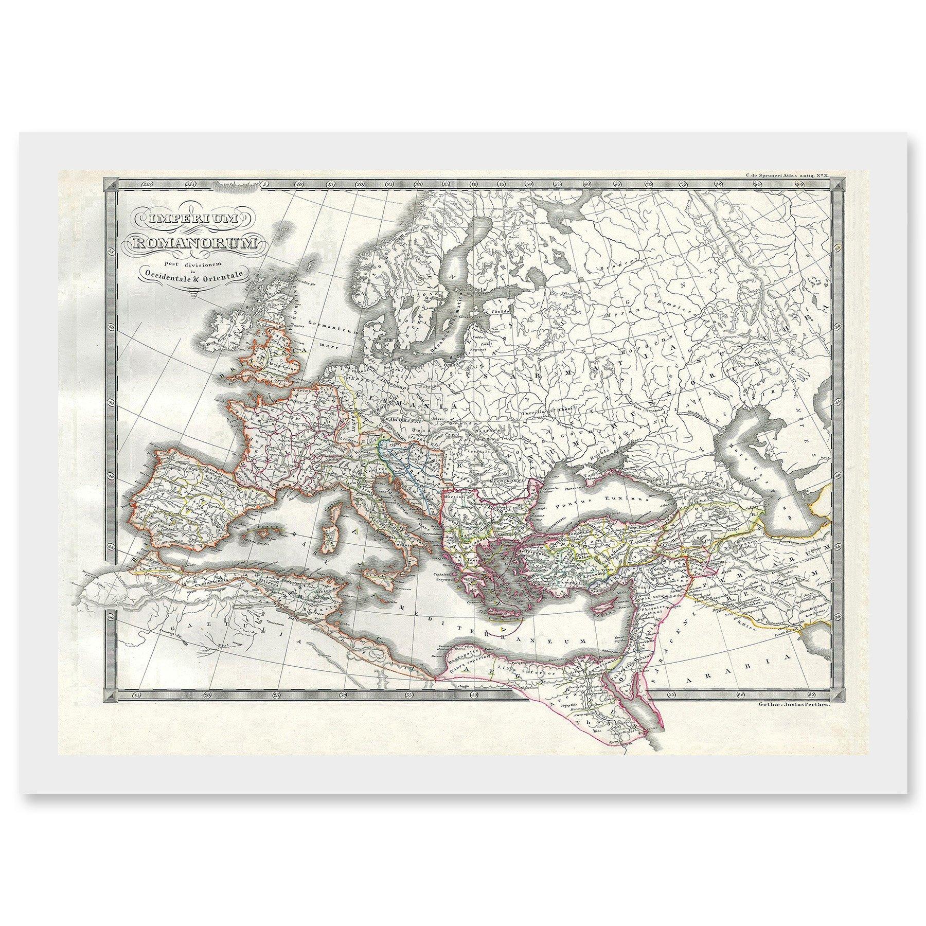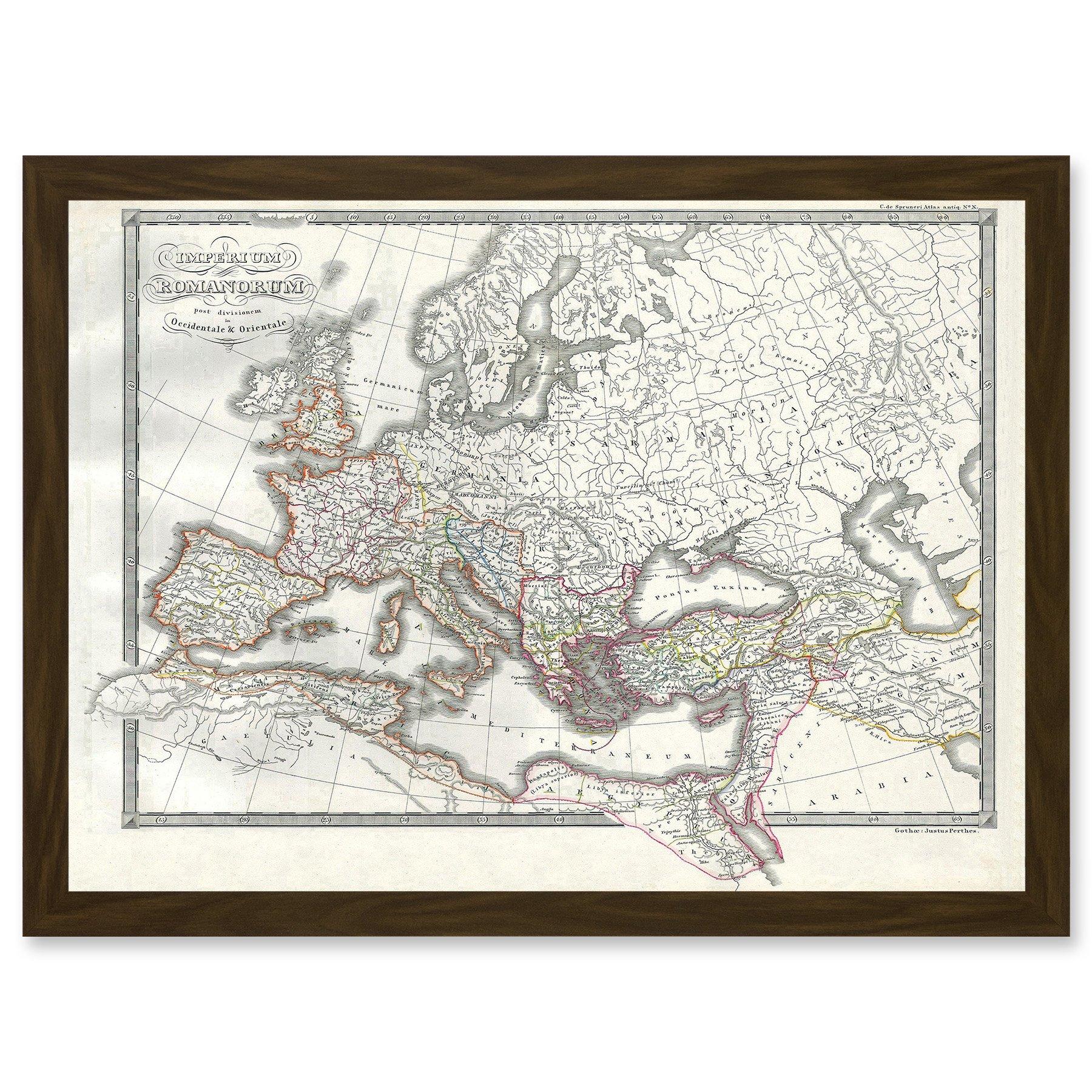 Roman Empire Divided East West Ancient Rome 1850 Vintage Map Artwork Framed Wall Art Print A4