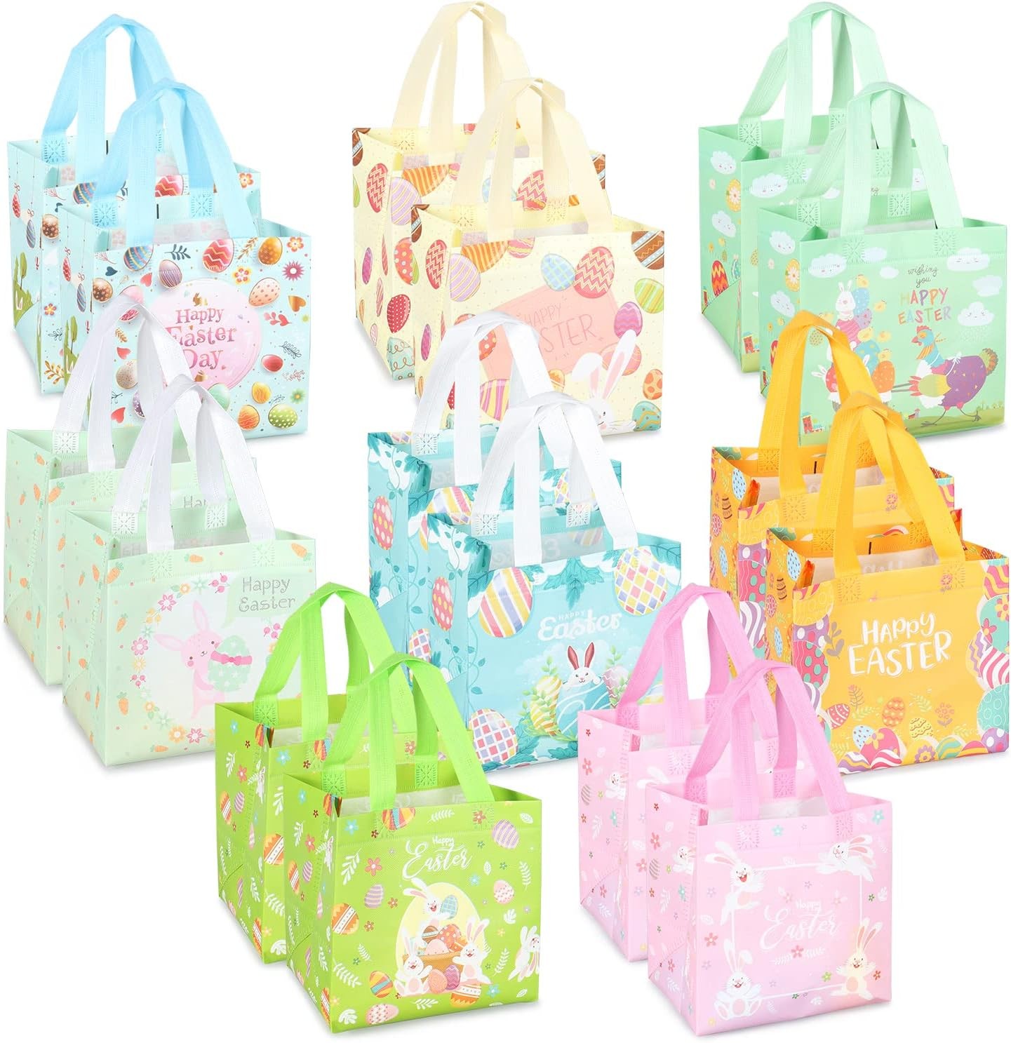 16PCS Happy Easter Egg Hunt Bags, Easter Bunny Carrot Chick Egg Bags with Handl
